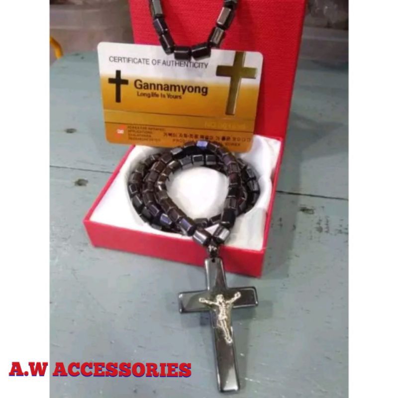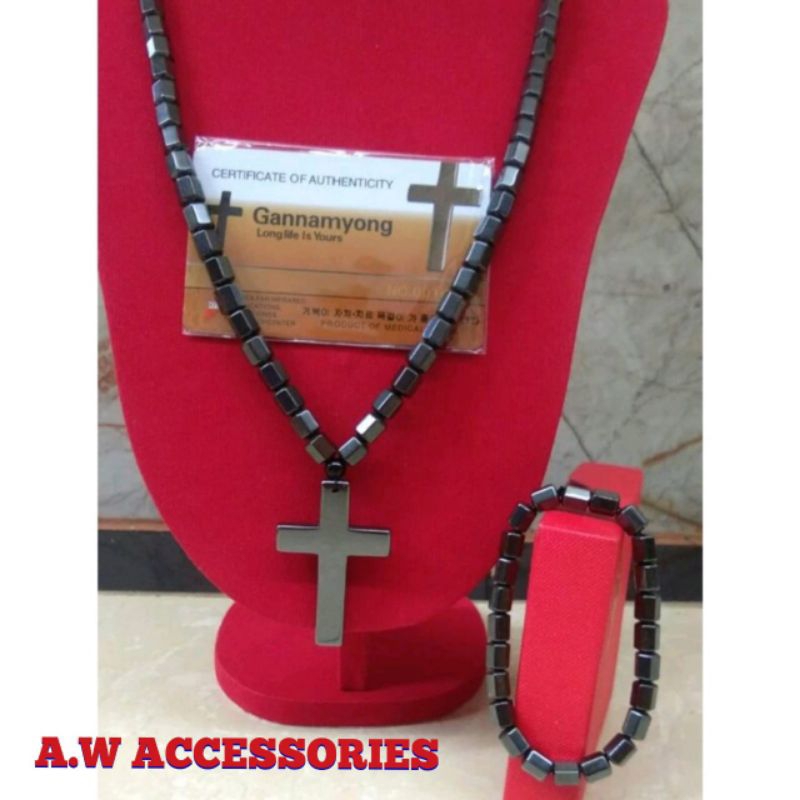 Kalung Kesehatan Gannamyong Model liontin Salib Ginsamyong Free Gelang + Box Magnet