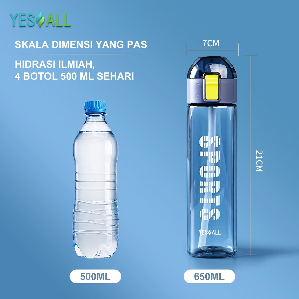 YESALL 650ml Botol Minum Transparan - Tutup Flip Thumbler Warna Transparan Infuse Water Bottle Infuser Olahraga SH004