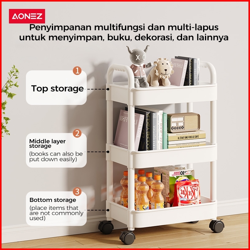 Aonez Rak Troli Susun Rak Kamar Mandi Dapur Kamar Tidur Serbaguna 4 Susun Rak Penyimpanan Trolley