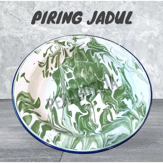 12 PCS PIRING MAKAN SENG 22 CM LURIK BLURIK BLIRIK ENAMEL KALENG BELANG PIRING PANCI