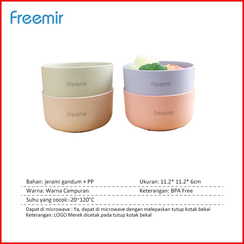 Special Price Freemir Set 4 Pcs Mangkok Bulat 11.5cm Wheat Straw Mangkuk Makan Bowl Set 4pcs Warna Warni