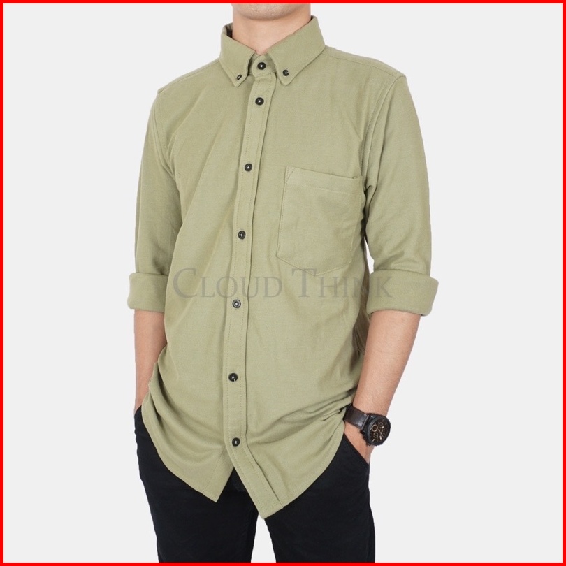 Kemeja Pria Lengan Panjang Olive Olive Original Cotton Pique Best Quality