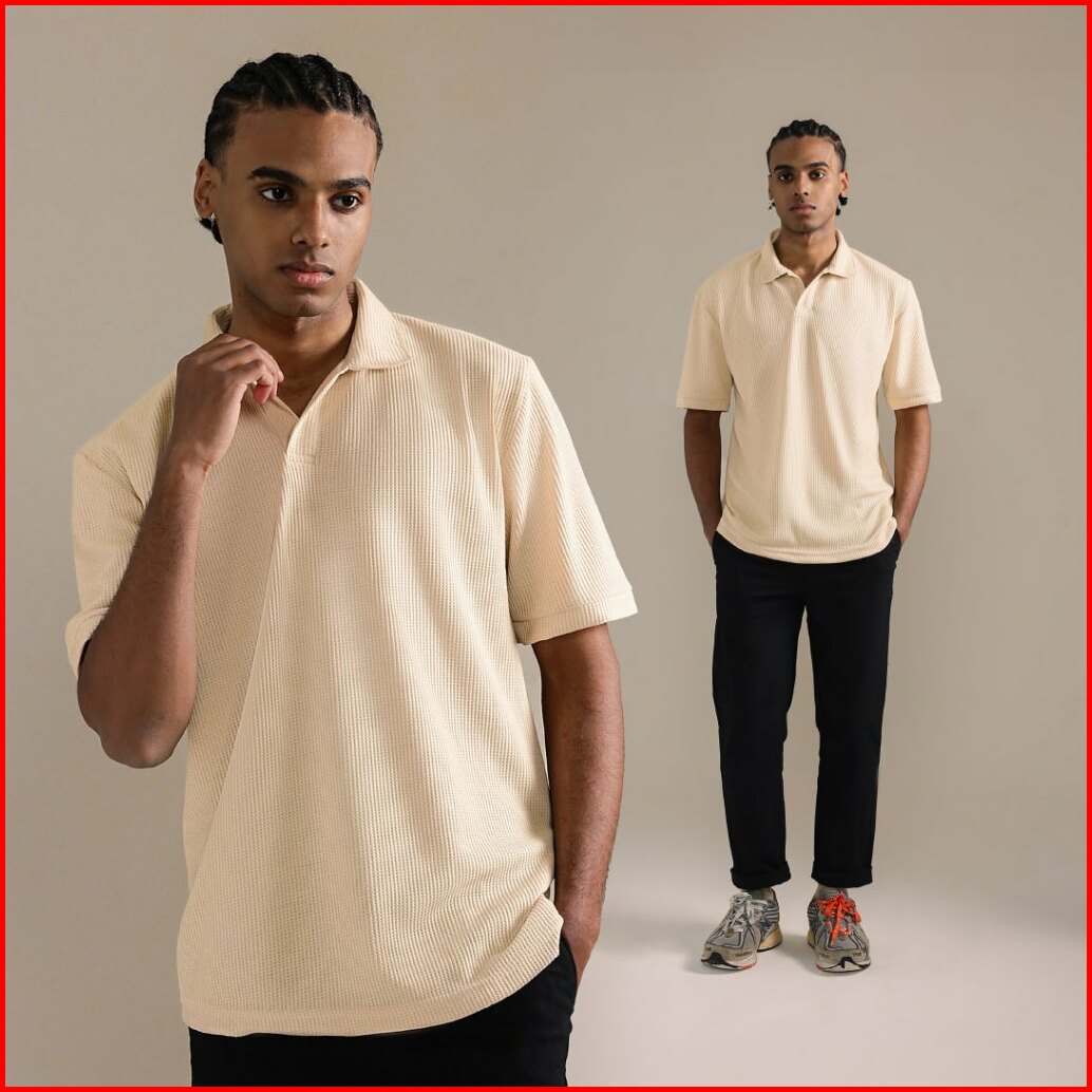 Broodis Kaos Polo Shirt Pria Cream Kerah Waffy Polo Knit Khaki