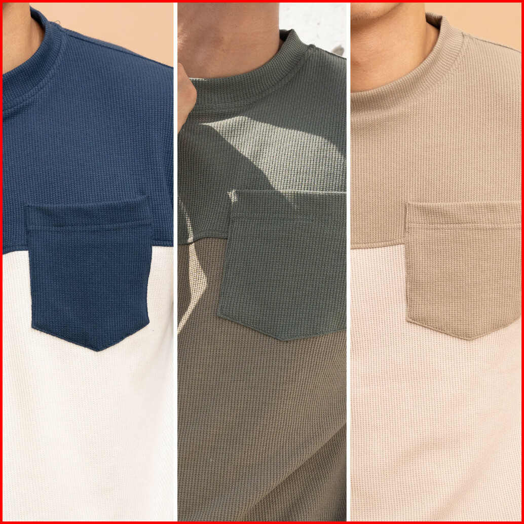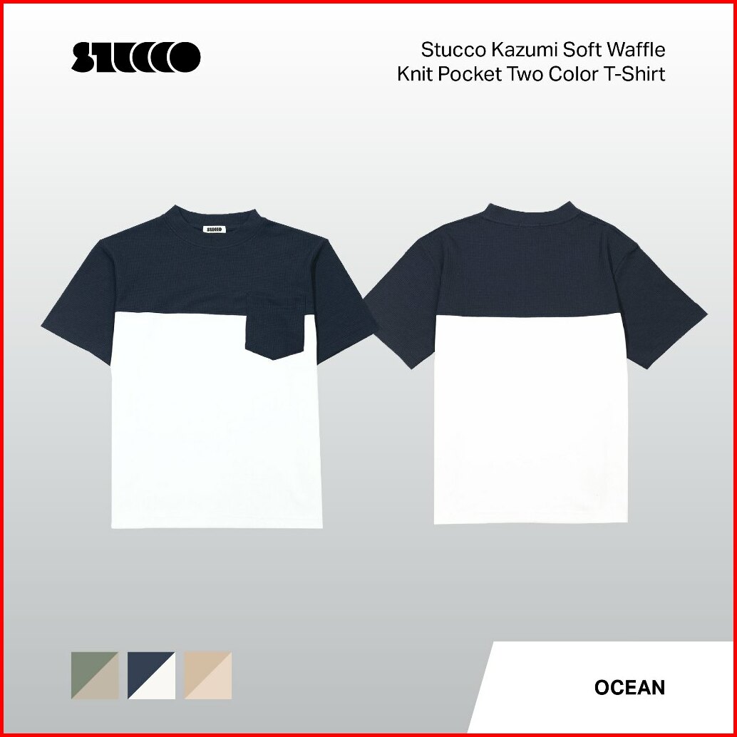 Stucco Kazumi Soft Waffle Knit Katun Kaos Pria Pendek Pocket Two Color T-shirt Sage