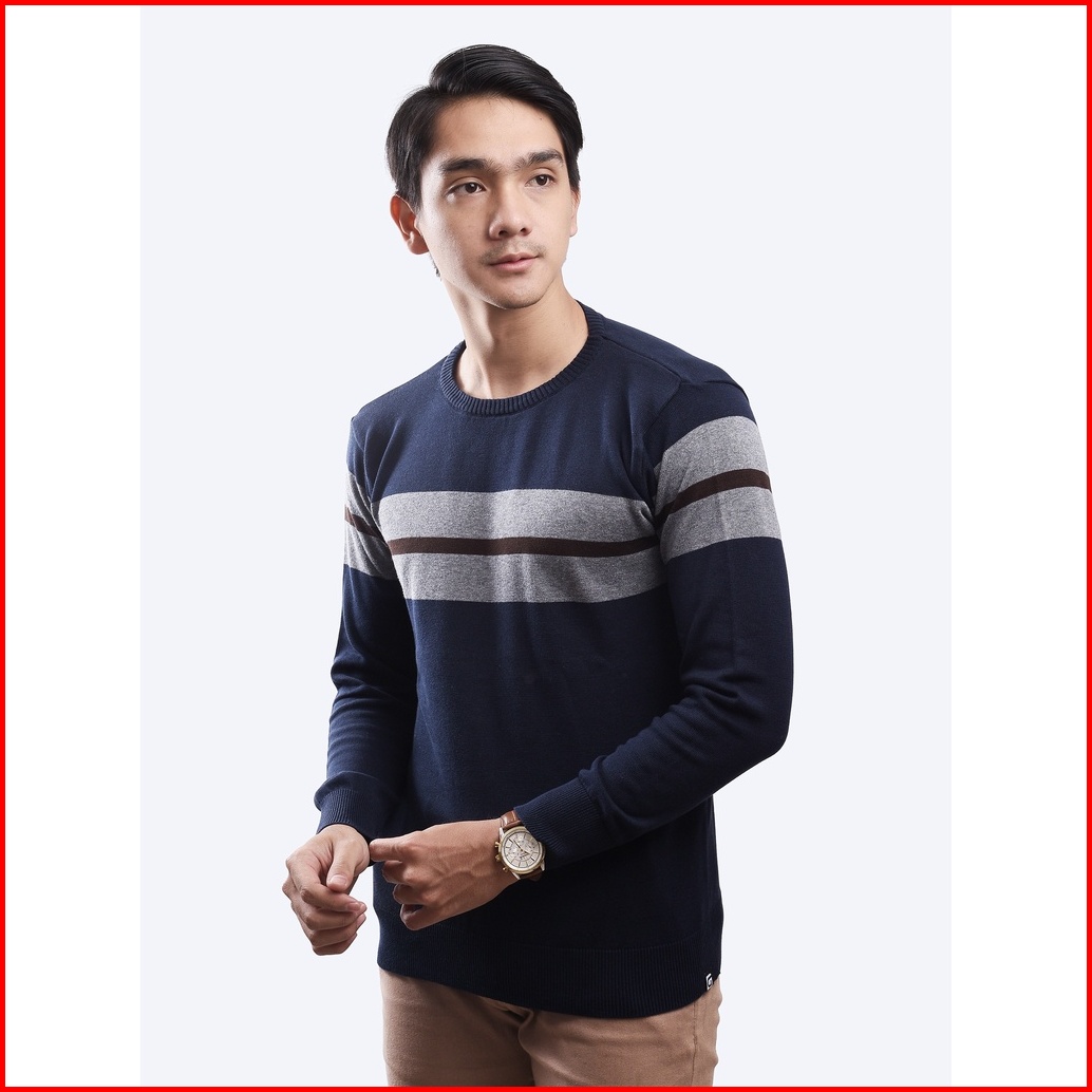 Gomuda Sweater Rajut Pria Crewneck Stripe Blur - Grey Coffee