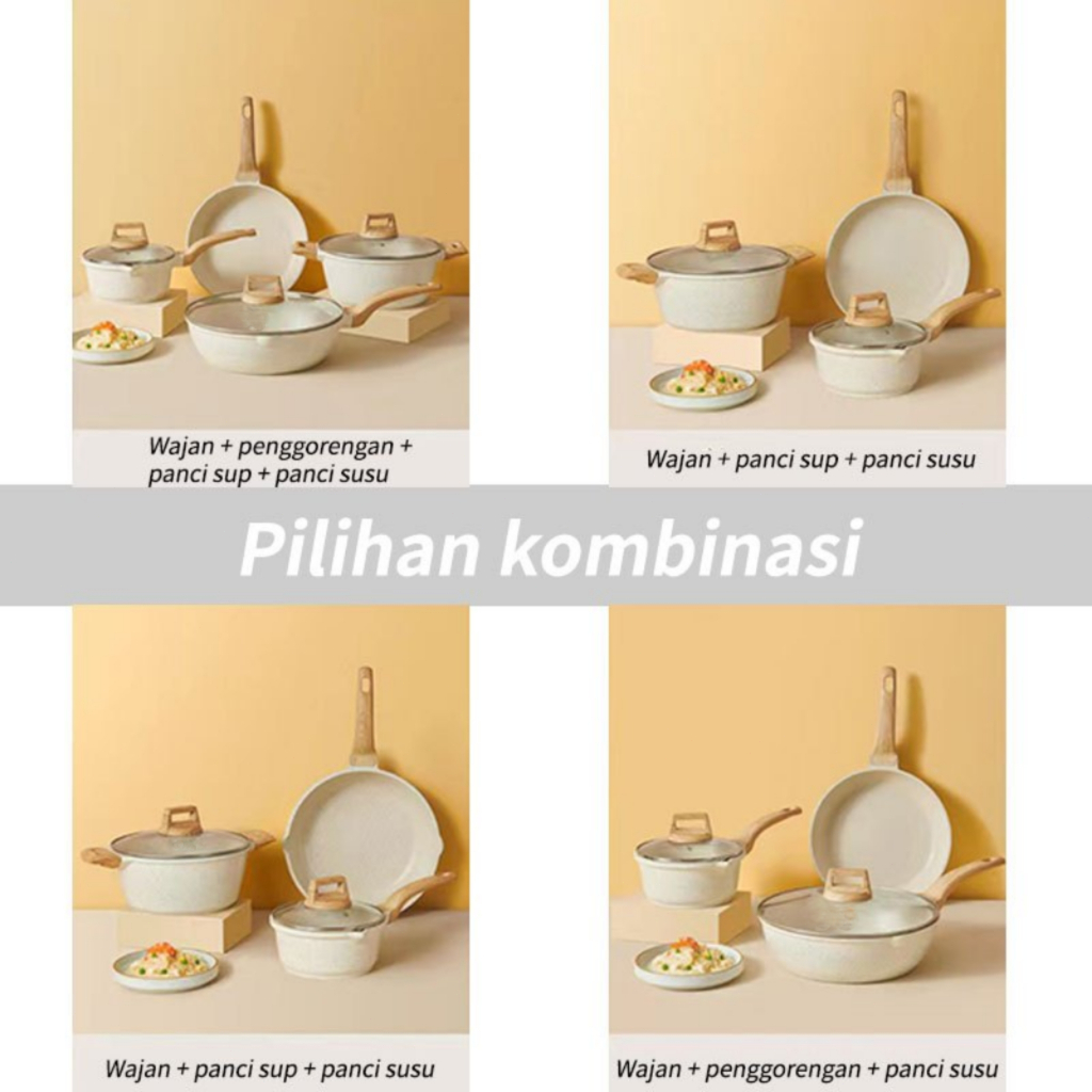 7PCS Putih Granit Antilengket Peralatan Masak Dapur Untuk Semua Kompor Panci Wajan Penggorengan Most Aesthetic Premium Non-stick