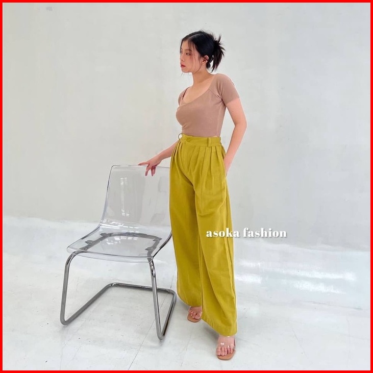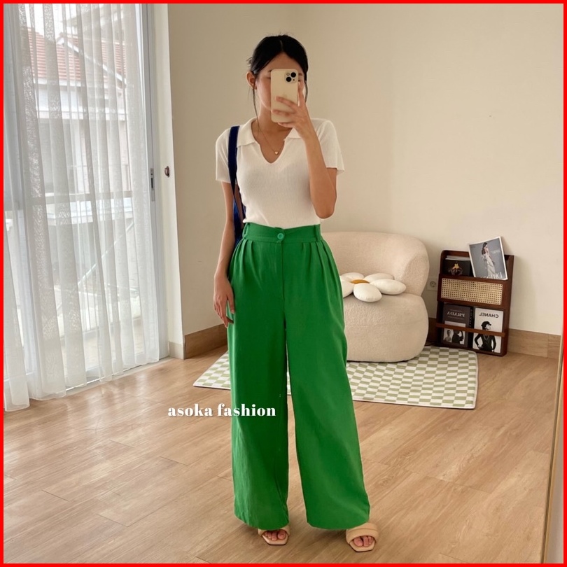 Asoka Stormi Pants 2124 - Celana Kulot Linen - Celana Wanita Highwaist - Pop Colors
