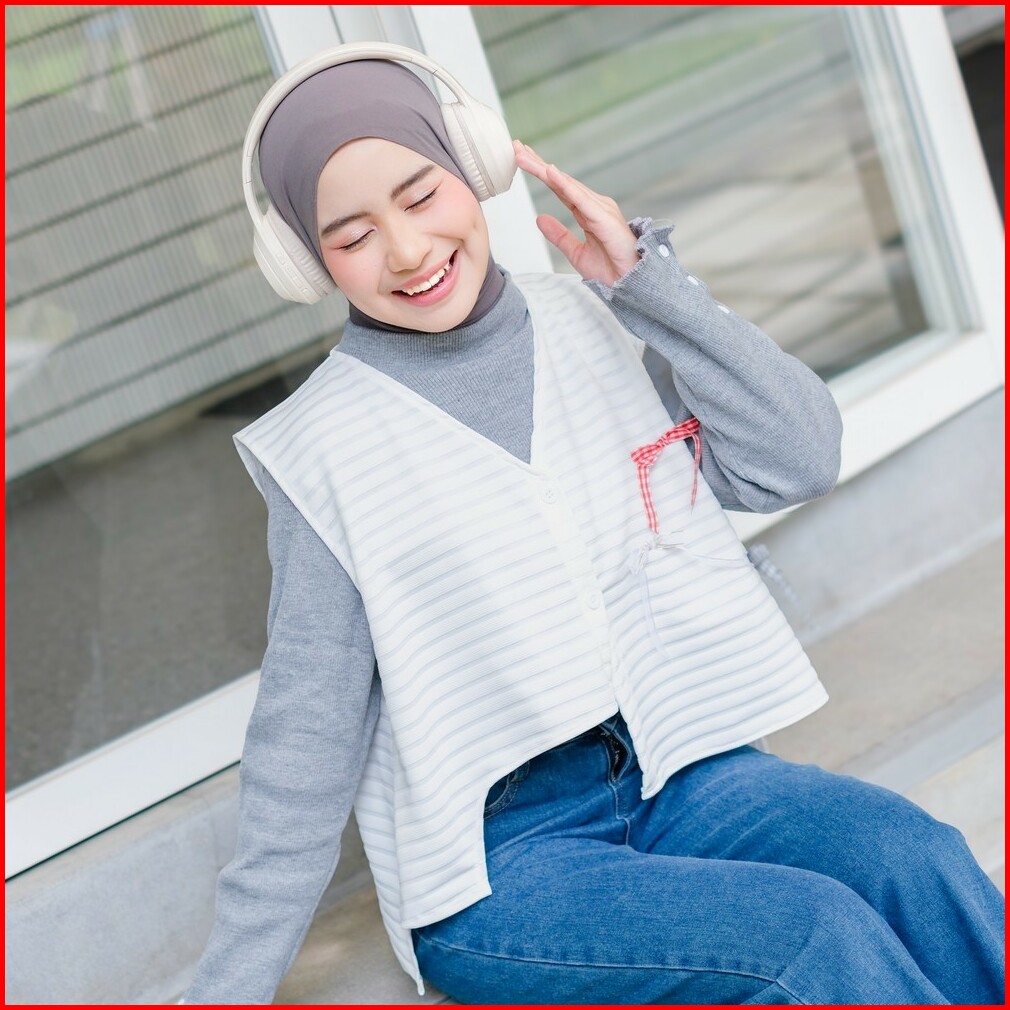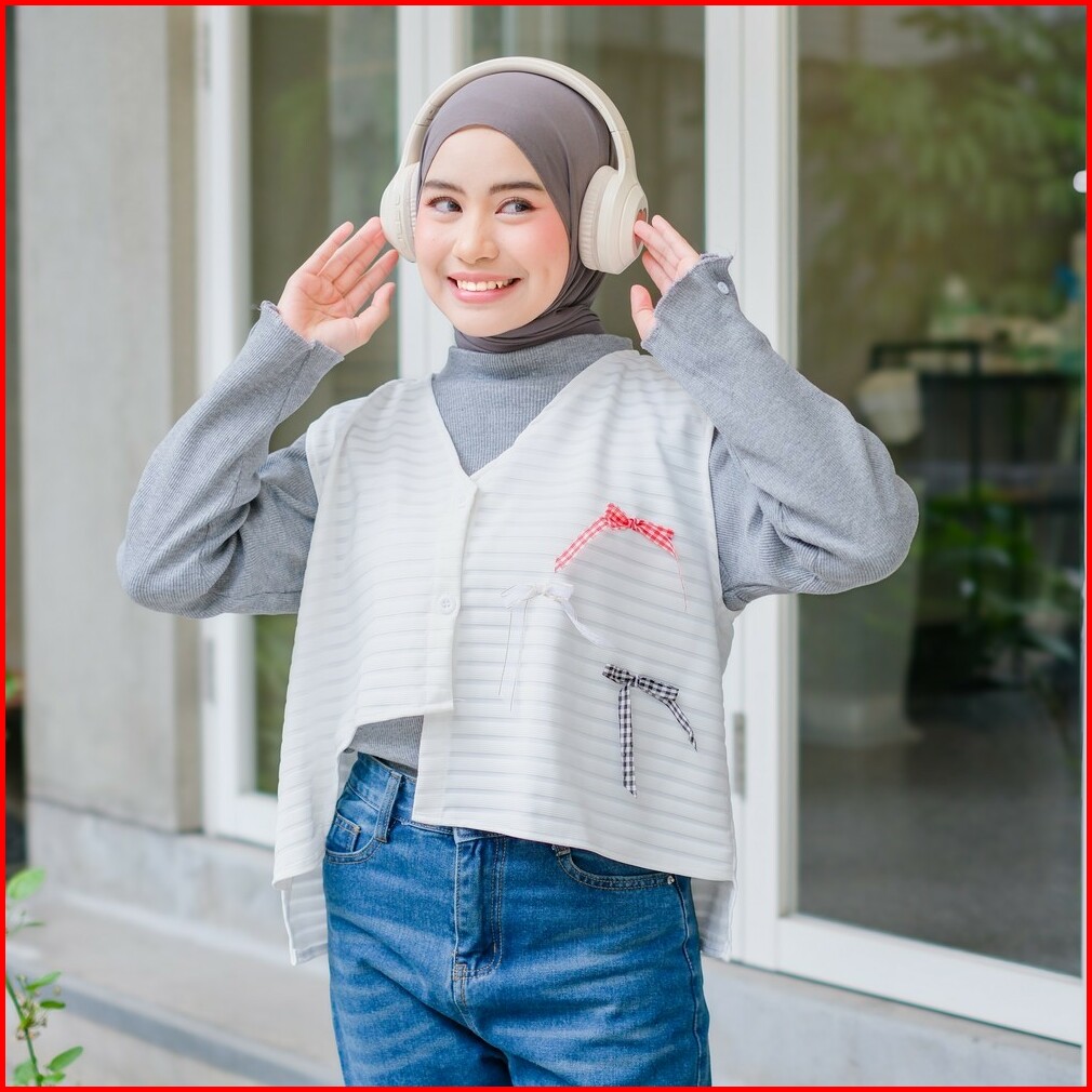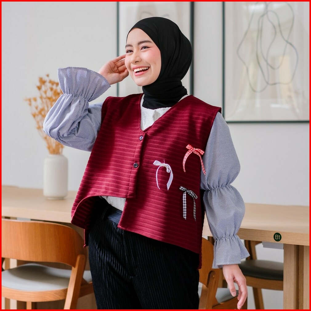 Mybamus X Purwakembar Button Vest With Ribbon Outer Rompi Wanita Kancing Coquette Ala Korea