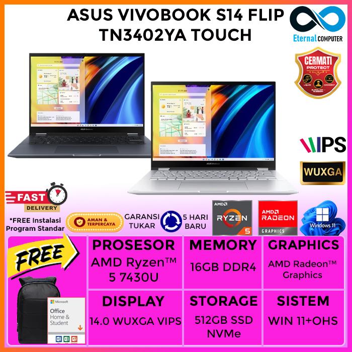 Asus Vivobook S14 Flip Tn3402Ya Touch Ryzen 5 7430U Ram 16Gb 512Gb Ssd Win 11+Ohs 14.0 Wuxga Vips - Unit Only, S1Lverr