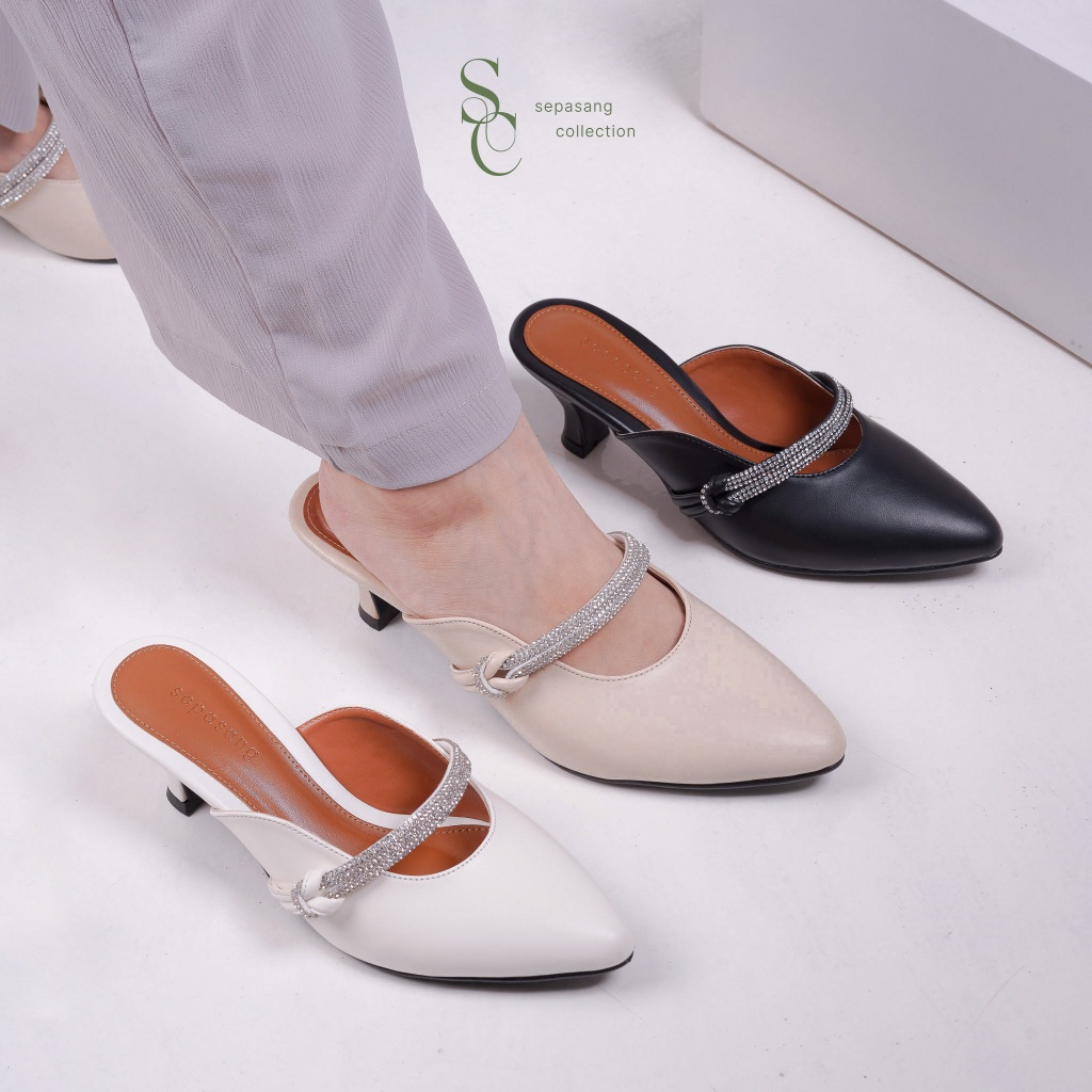 SEPASANG COLLECTION Meiko Mules Wanita Heels Hak 5 Cm
