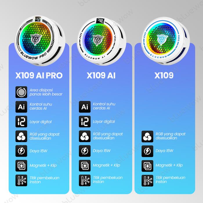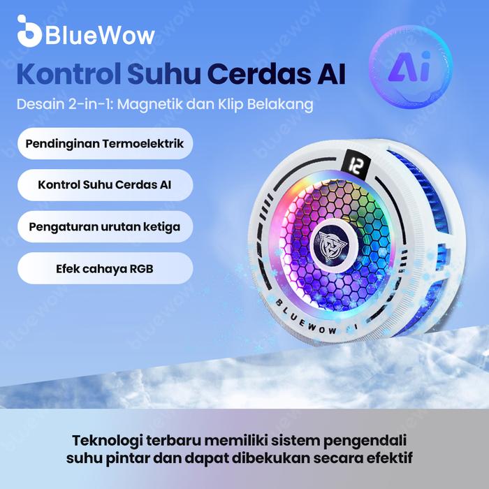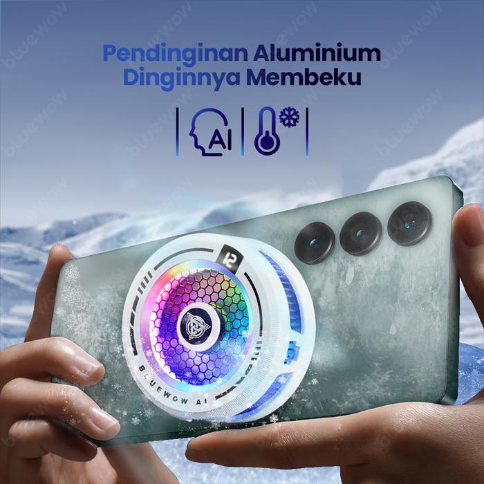 Kipas Pendingin Ponsel Bluewow X109 Ai , 3 Gigi Yang Dapat Disesuaikan, Pendingin Game Pubg, Pendingin Ponsel Klip Belak