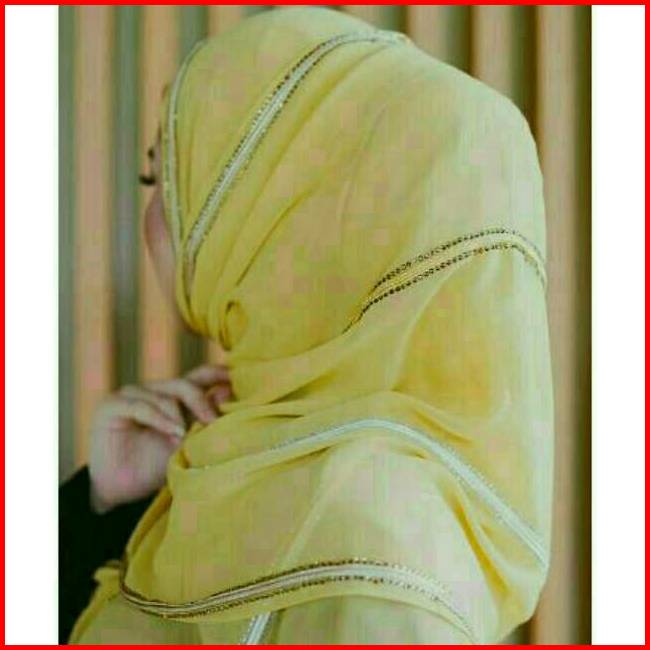 Fathijab Pashmina Party Ceruti Import Pita Setengah Hijab Swarovski