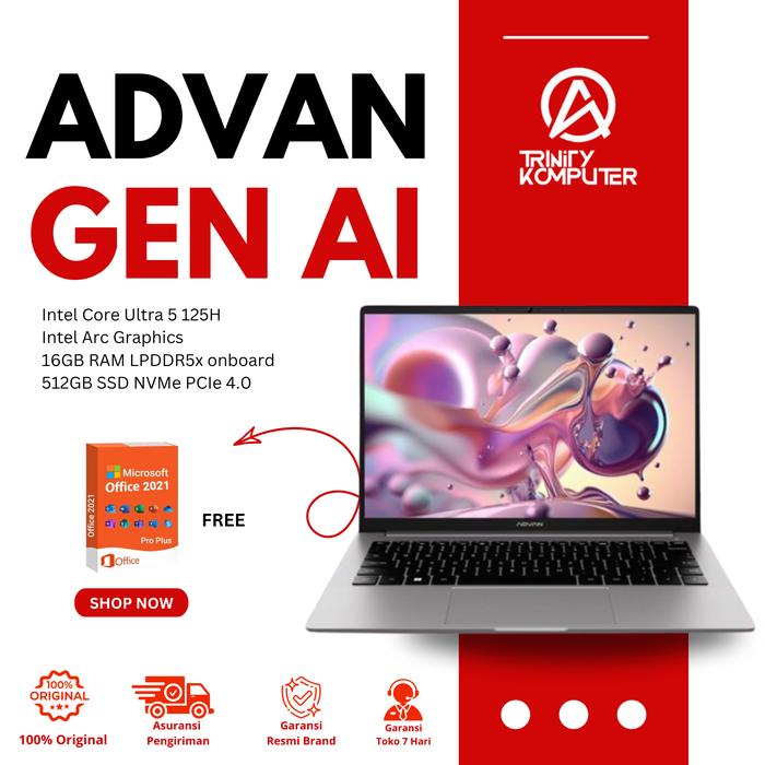 Advan Laptop Ai Gen Ultra 5 125H 16Gb 512Gb Windows 11 - Non Bundle