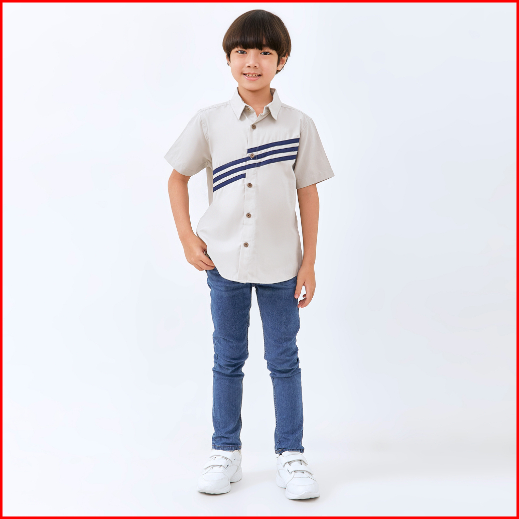M231 Kemeja Anak Laki Laki Basic Combination Pendek Abu 2764c