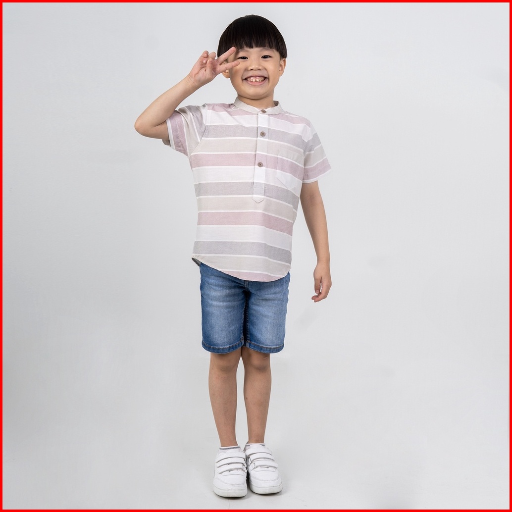 M231 Kemeja Anak Laki Laki Shanghai Stripe Pendek Merah 2210b