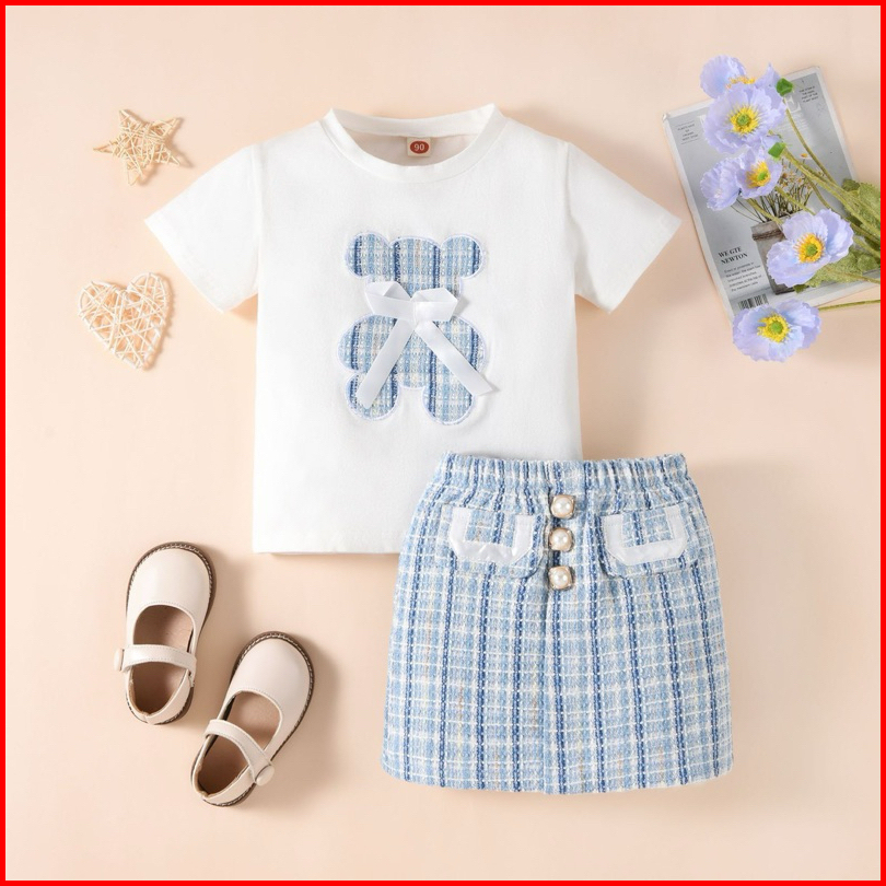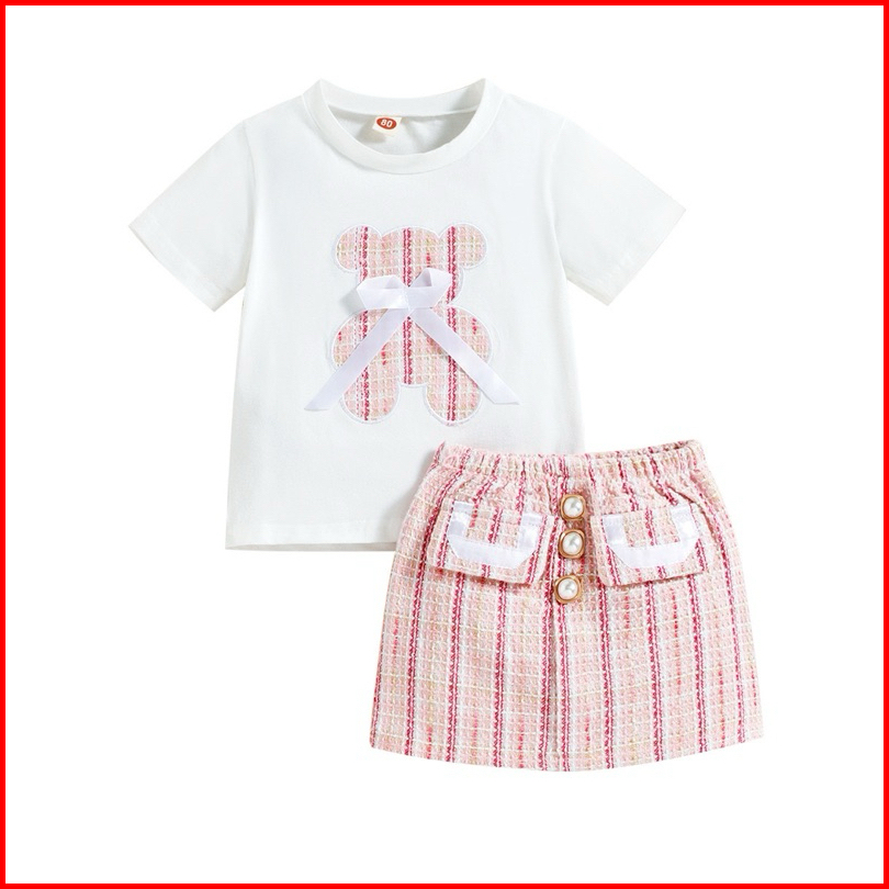0-5th Setelan Anak Perempuan Atasan Bawahan Premium Bear Pink Blue
