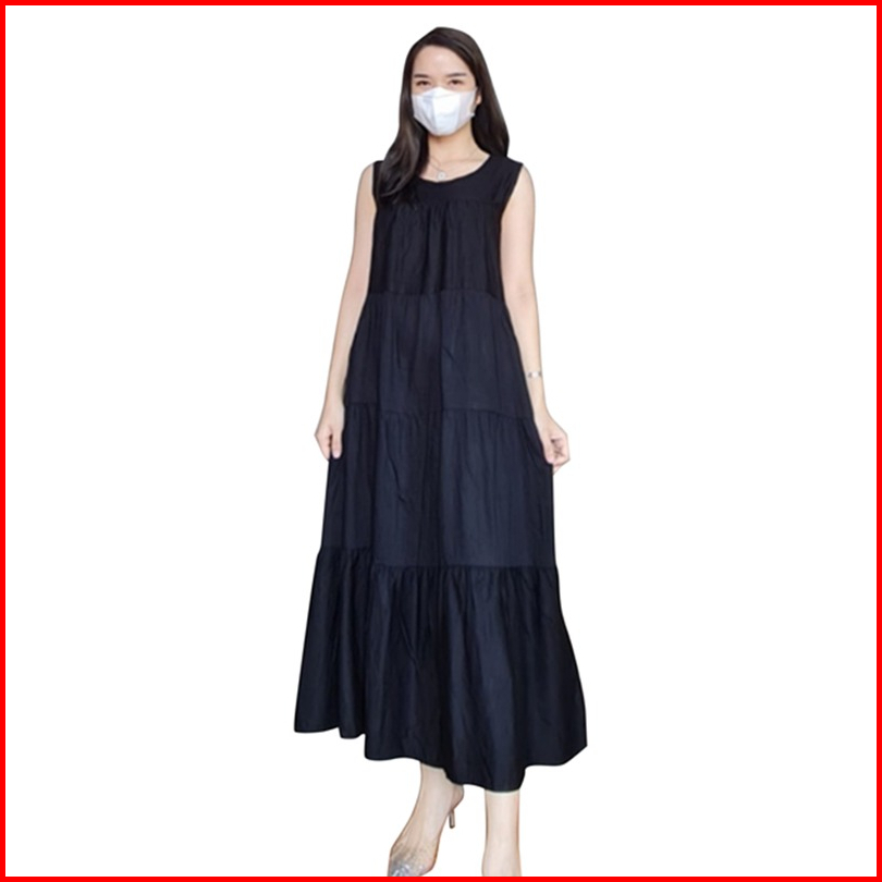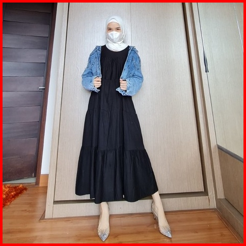 Parisdivarious Iner Dress Midi Bahan Rayon Twill Premium Ld 110 Cm Pj 120 Cm Fit Xxl