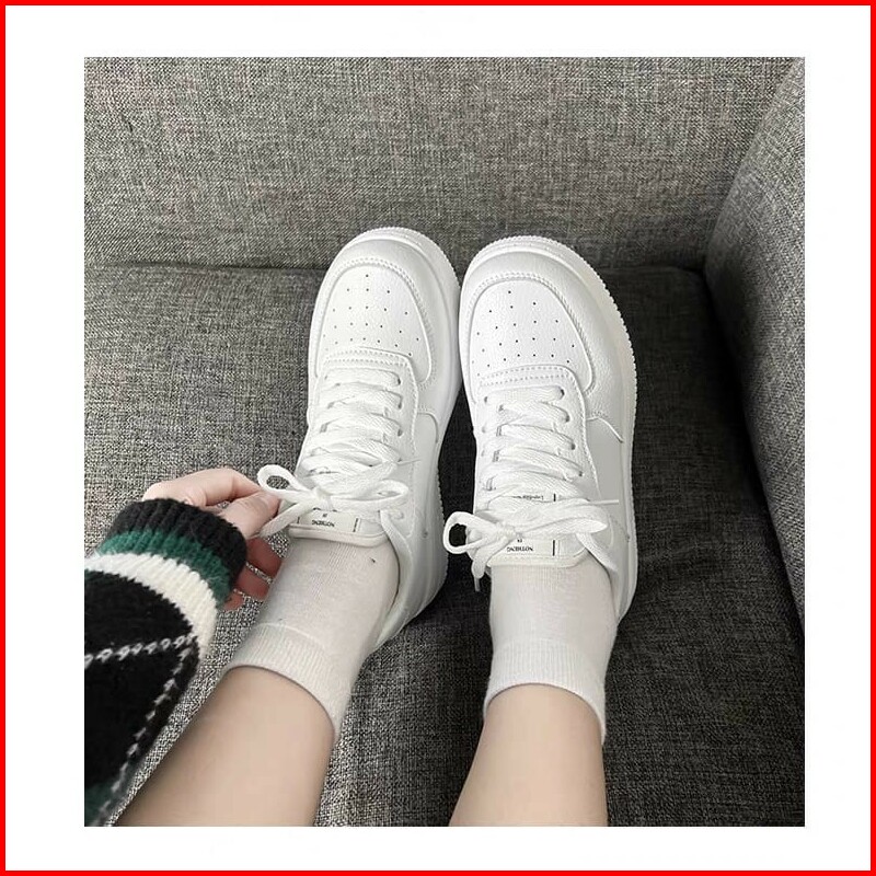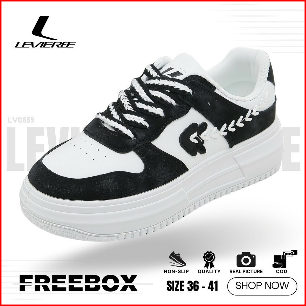 Lvr Free Box Sepatu Sneakers Tali Simple Kulit Wanita Casual Sport Shoes Wanita Lv0559