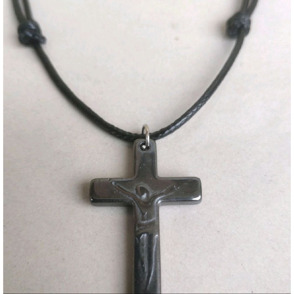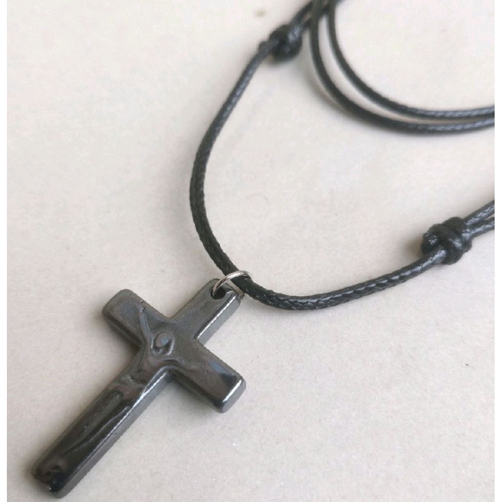 Kalung Salib Batu Bismuth Tali Korea Jessus Cristh Pria Dan Wanita