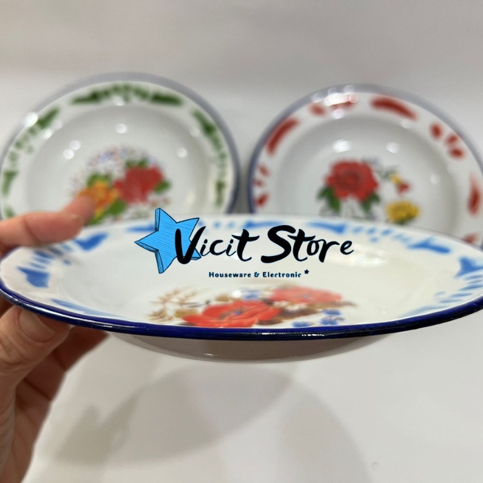Paket 6pcs Piring Enamel Jadul / Piring Seng Enamel 22cm Motif Bunga