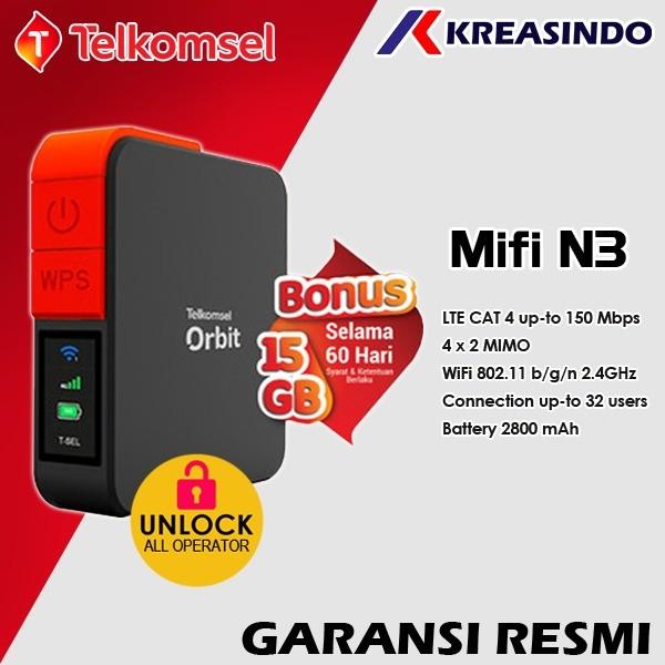 Telkomsel Orbit Mifi N3 Hkm M23 Bonus Kuota Modem Wifi 4G Garansi Resmi - Black