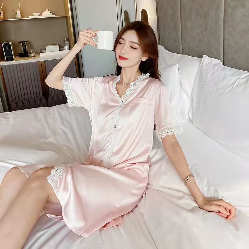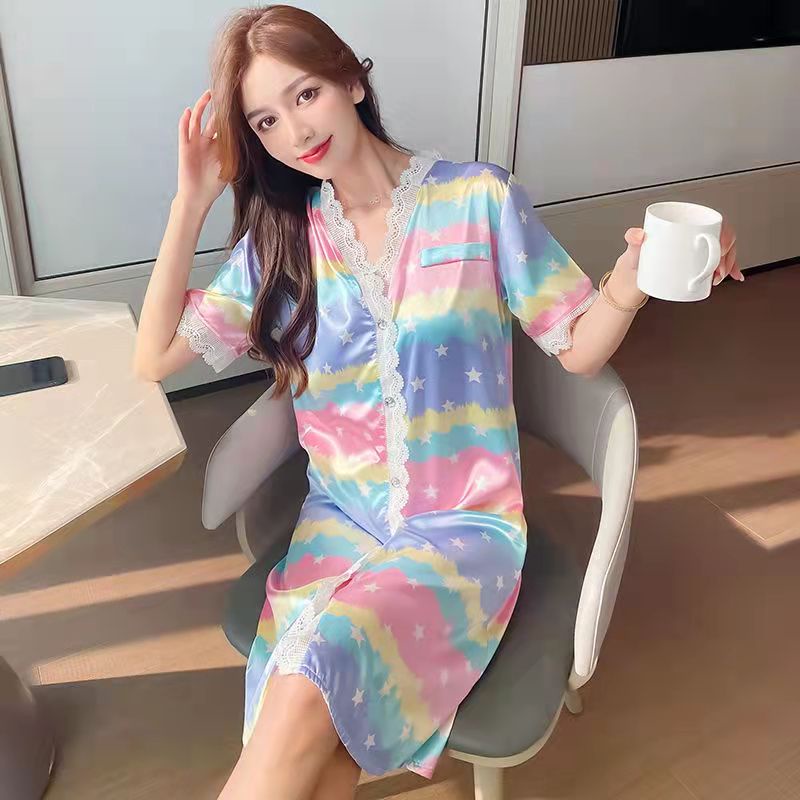 baru baju tidur sutra es seksi tipis lengan pendek setengah panjang piyama daster rayon/home dress rayon