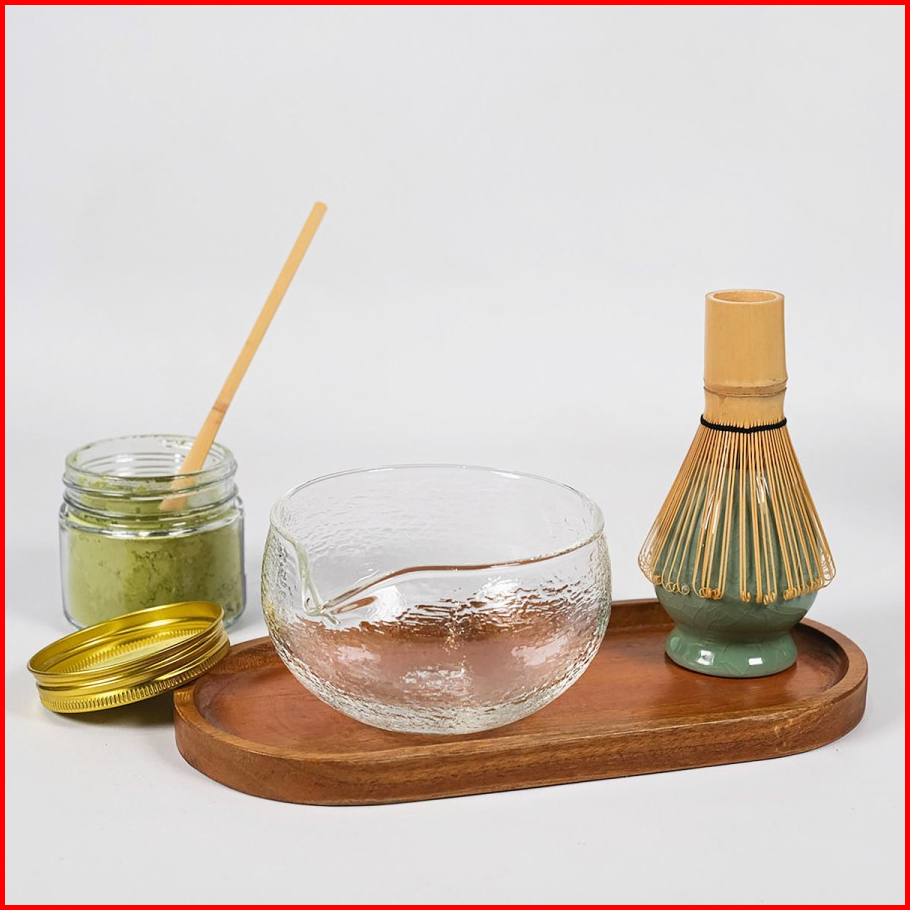 Matcha Bowl High Quality Textured Glass Chawan With Pouring Spout - Mangkok Matcha Bening