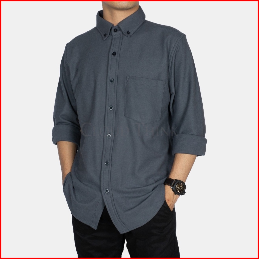 Kemeja Pria Lengan Panjang Abu-abu Tua Dark Gray Original Cotton Pique Best Quality