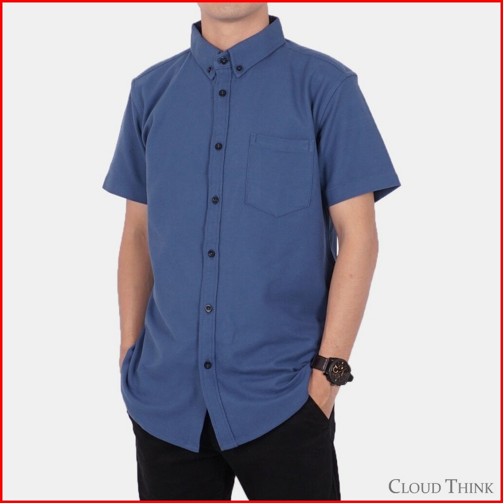 Kemeja Pria Lengan Pendek Denim Blue Blue Denim Original Cotton Pique Best Quality