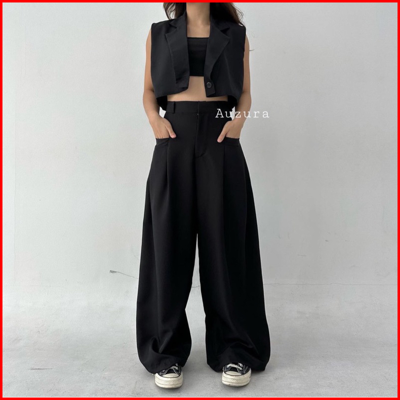 Gouw Pants - Celana Panjang Wanita Wide Highwaist Pants Basic Korean Long Trousers Murah