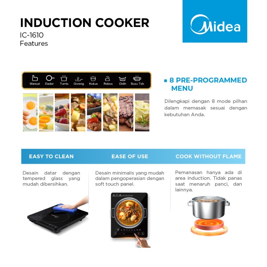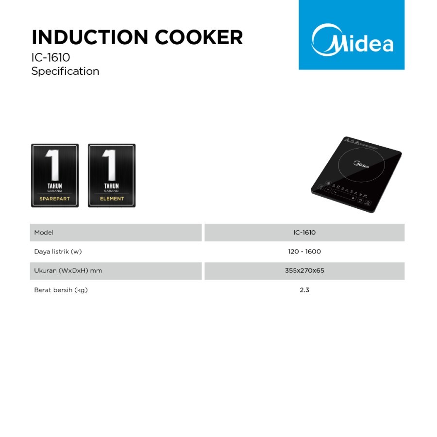 Midea Kompor Induksi 1 Tungku IC-1610 Hitam ( Free Panci ) Kompor Listrik Induksi Induction Cooker