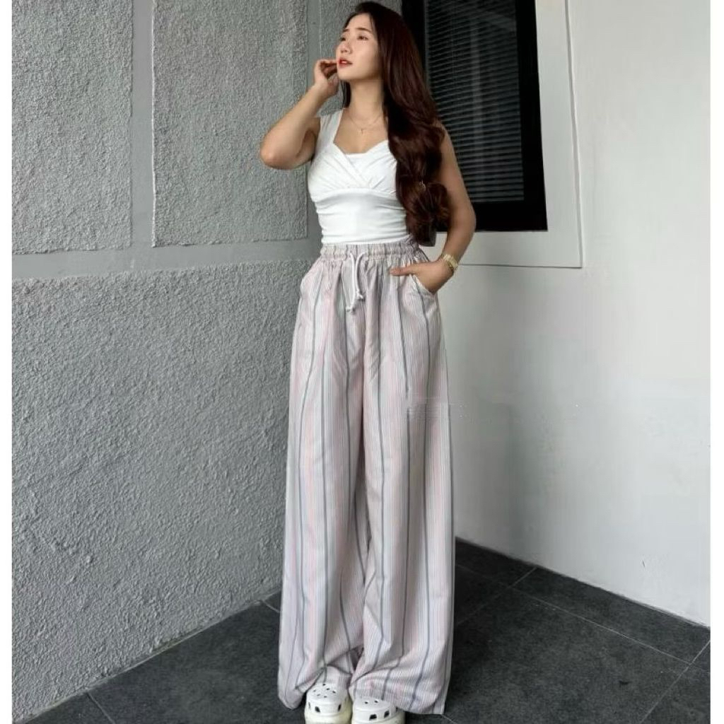 PANTS STRIP PANTS CELANA PANJANG WANITA BAGGY KANTOR KULIAH KULOT PINSTRIPE CELANA FORMAL CASUAL WANITA TREND FASHION