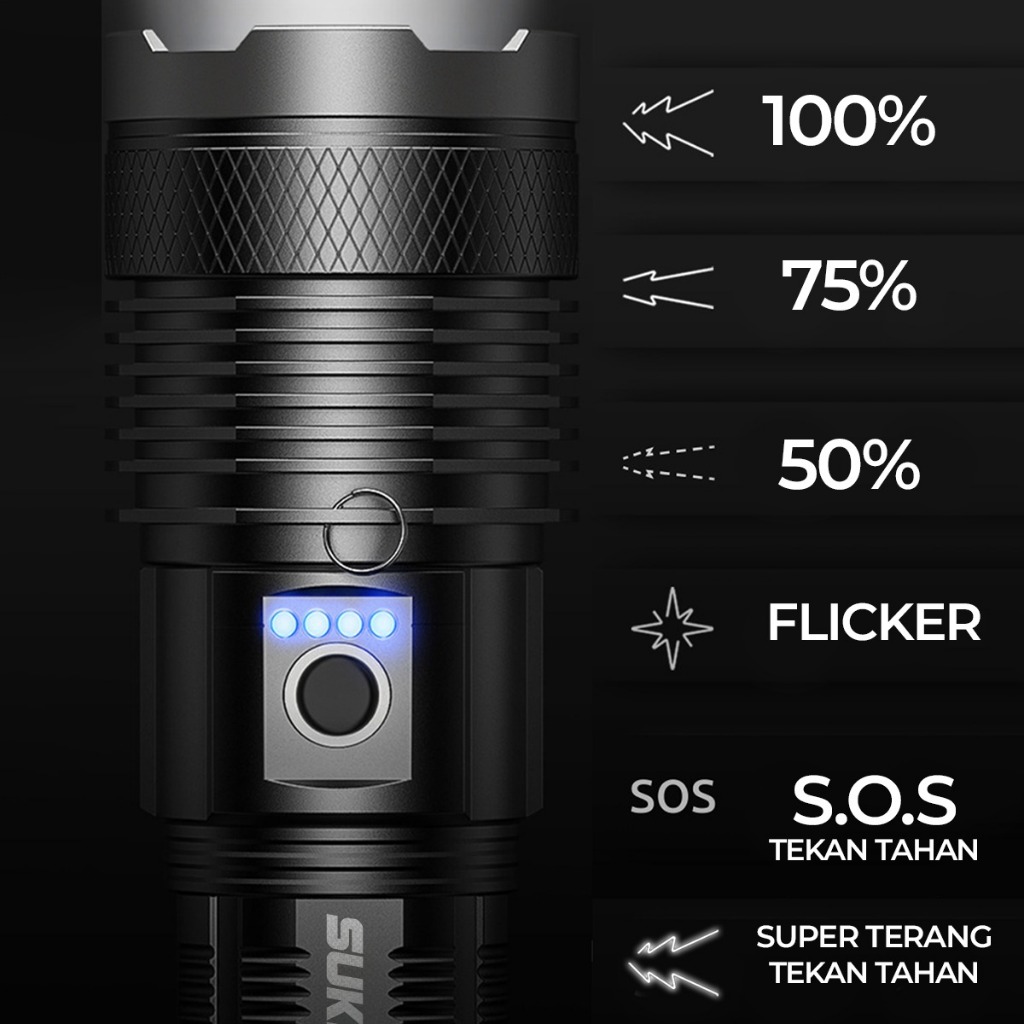 Senter Zoom In Out Super Bright Aluminium Alloy 4 Mode Flashlight Waterproof SP 68-1