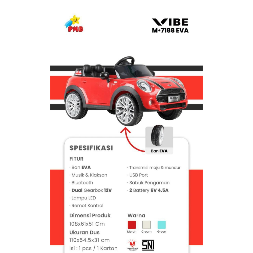 Mobil Aki Anak Mini Copper M7188 Mobil Aki Jumbo Ban Karet Mobil Aki Anak Remot Kontrol PMB 7188 Garansi Resmi Official