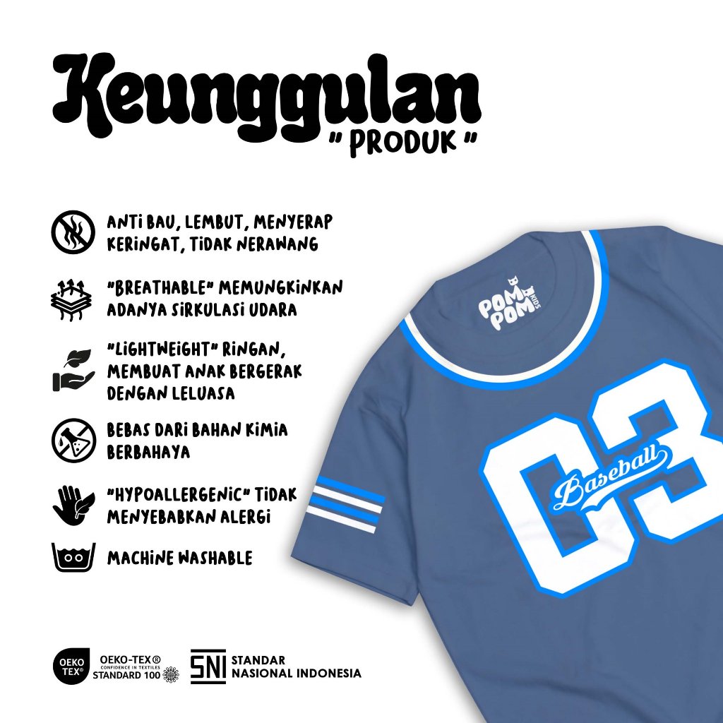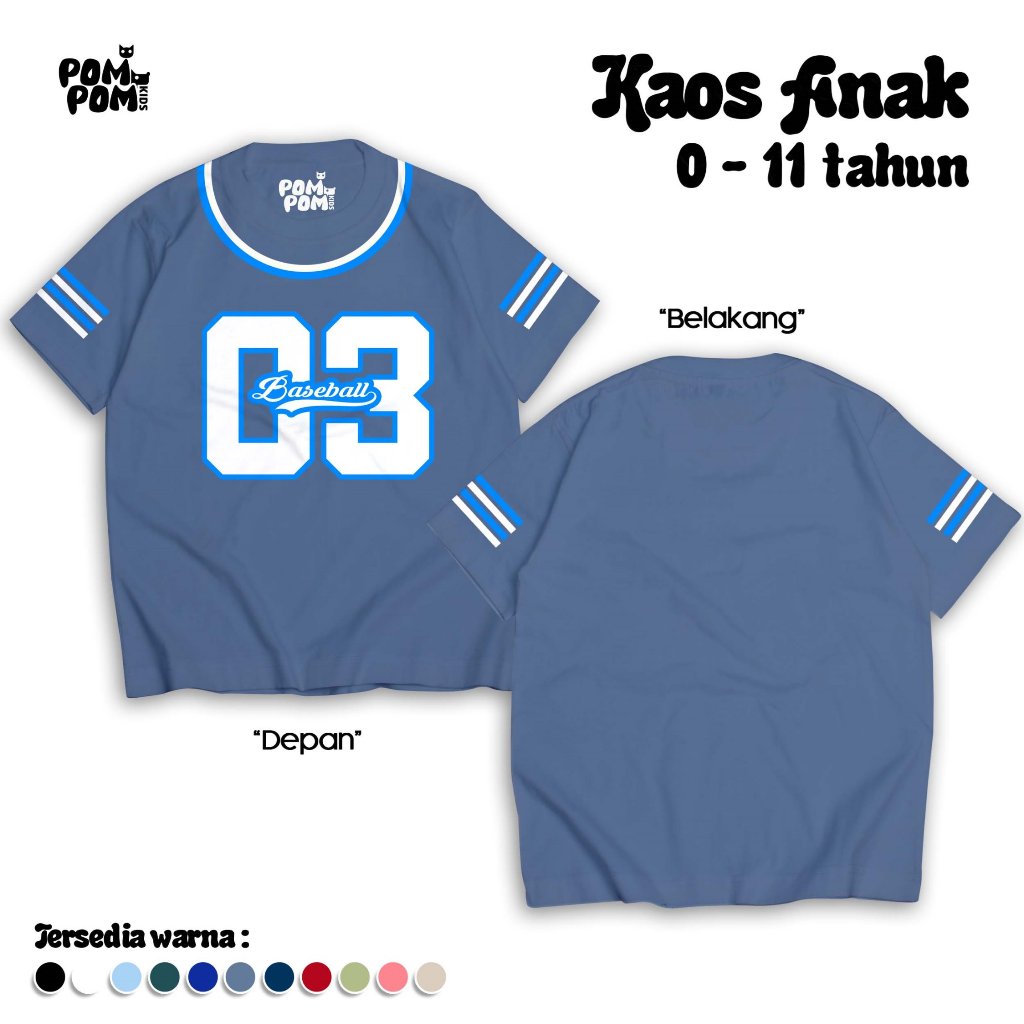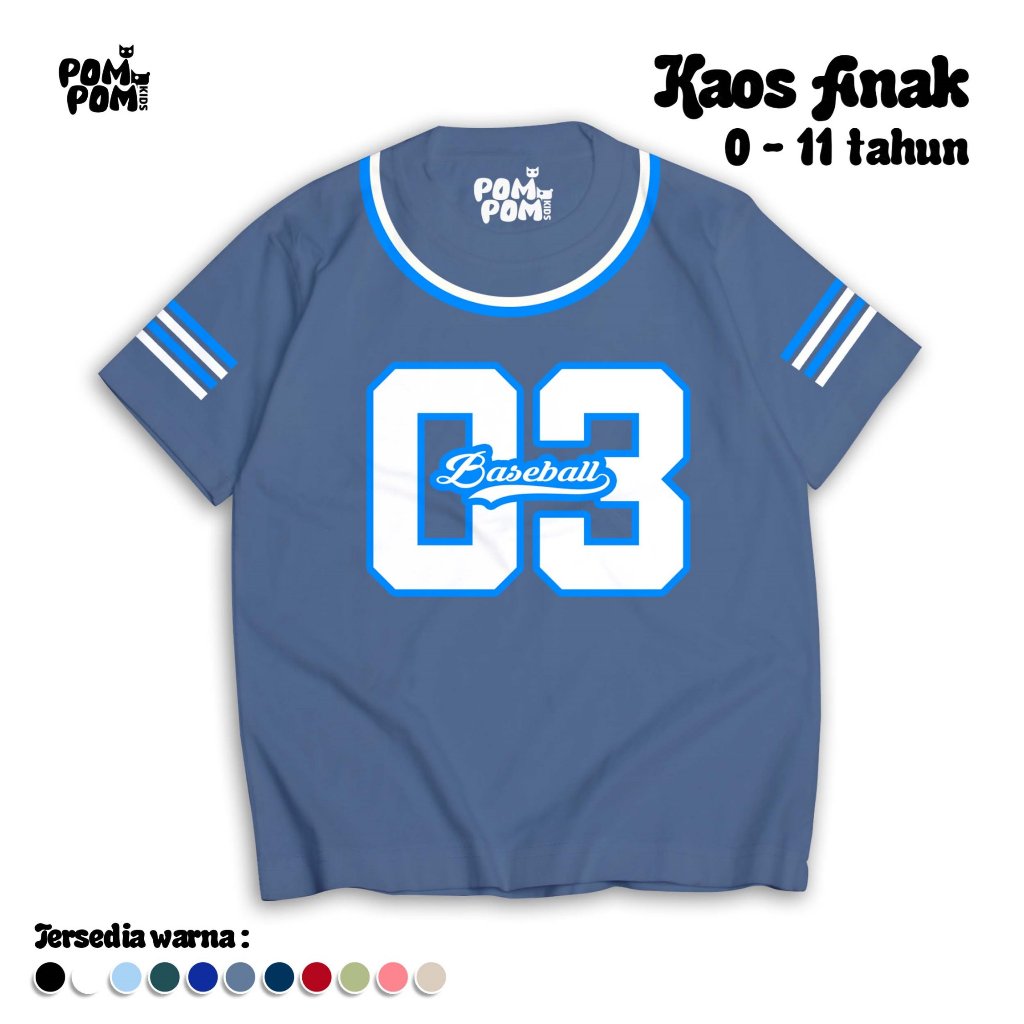 POMPOMKIDS - BASEBALL TEE NUMBER 03 I Kaos Oversize Anak Laki-Laki Perempuan 0-11 Tahun I Baju Jersey Sporty Katun Soft