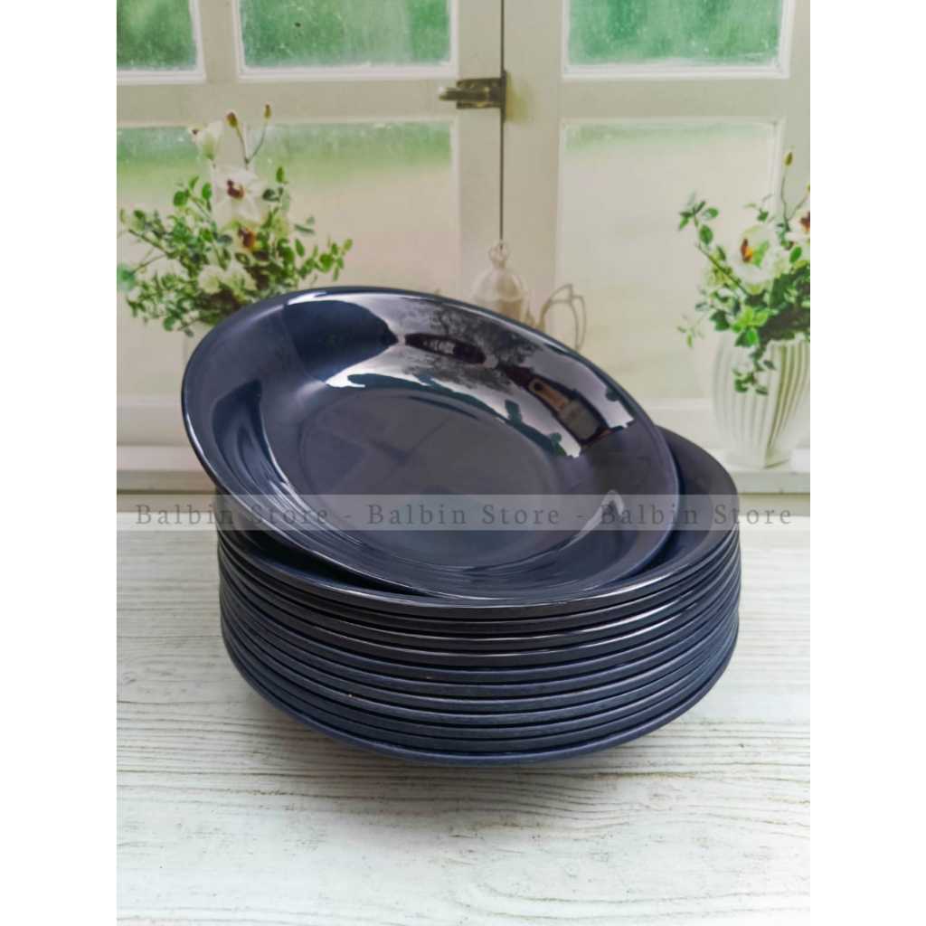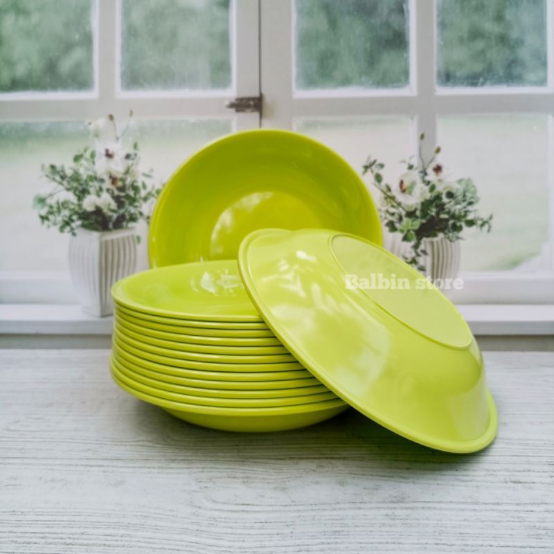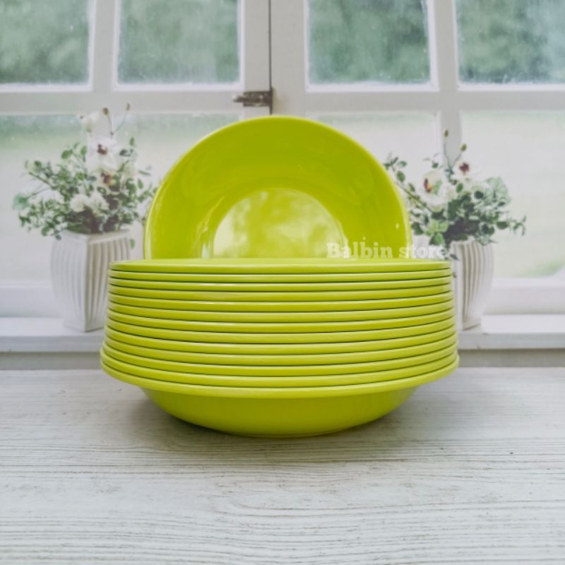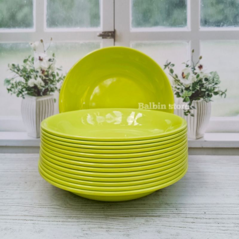 Spesial 12 pcs piring melamin bulat cekung dalam ukuran 22.5 cm warna hijau bahan tebal asli