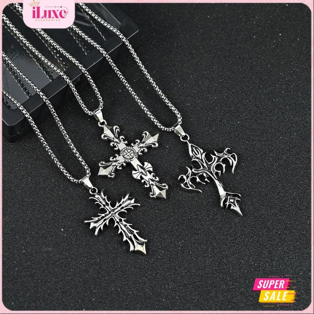 Kalung Elois Salib Api – Stainless Premium, Tahan Lama Dan Anti Pudar Gaya Hip Hop
