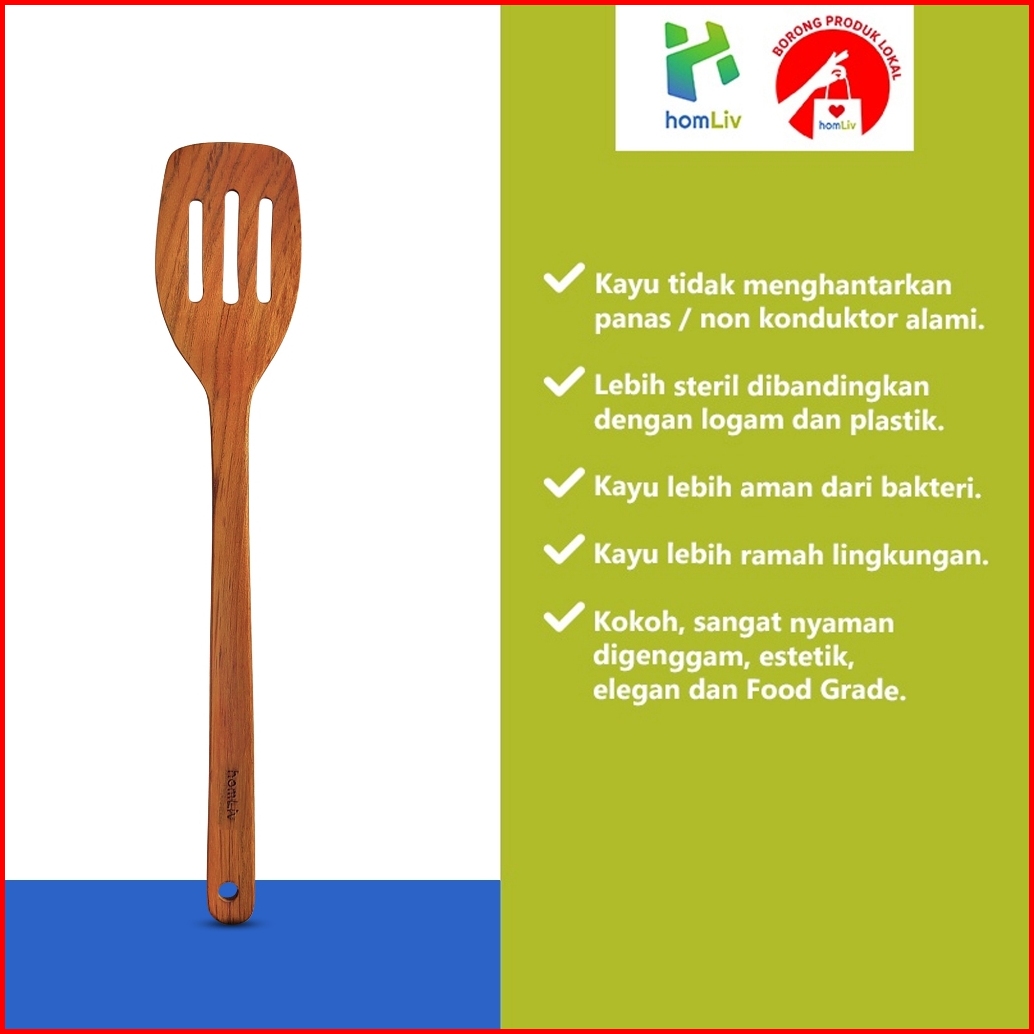 Homliv Sutil Kayu Jati 35 Cm Tamara Teak Wood Alat Masak Foodgrade 07257