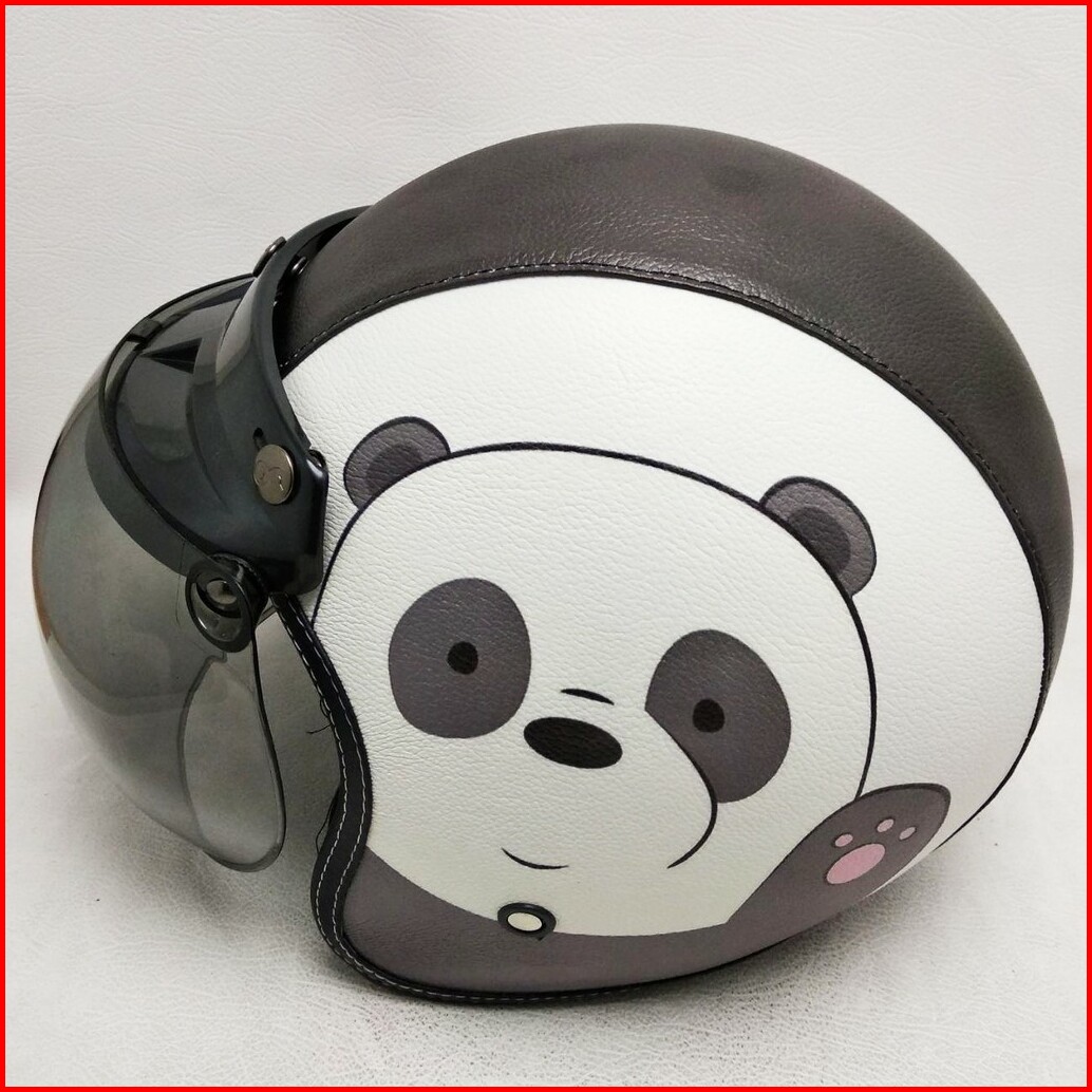 Helm Retro Bogo Kulit Panda Pan Pan Kaca Bubble Halfface