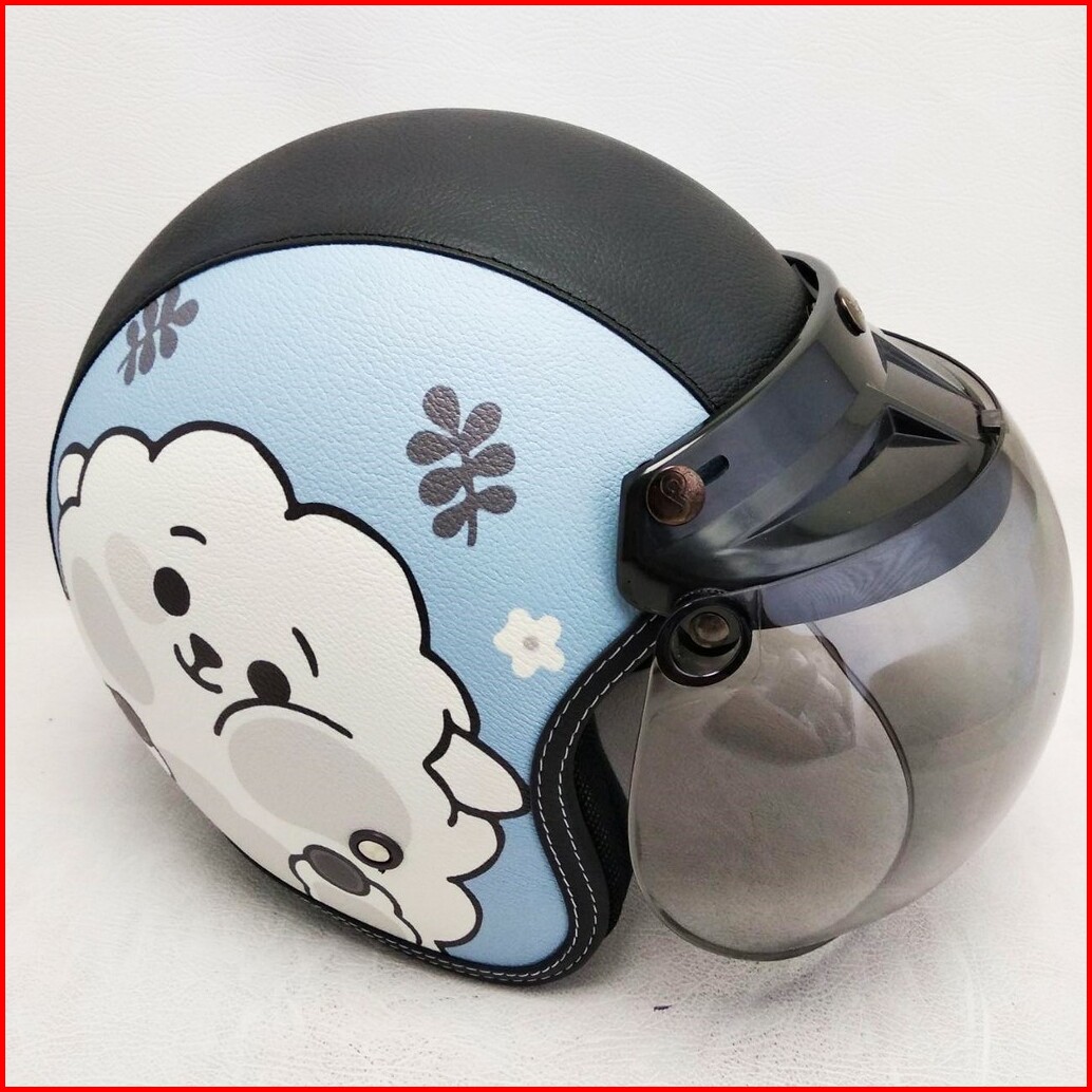 Helm Bogo Retro Kulit Rj Chubby Klasik Kaca Bubble Halfface
