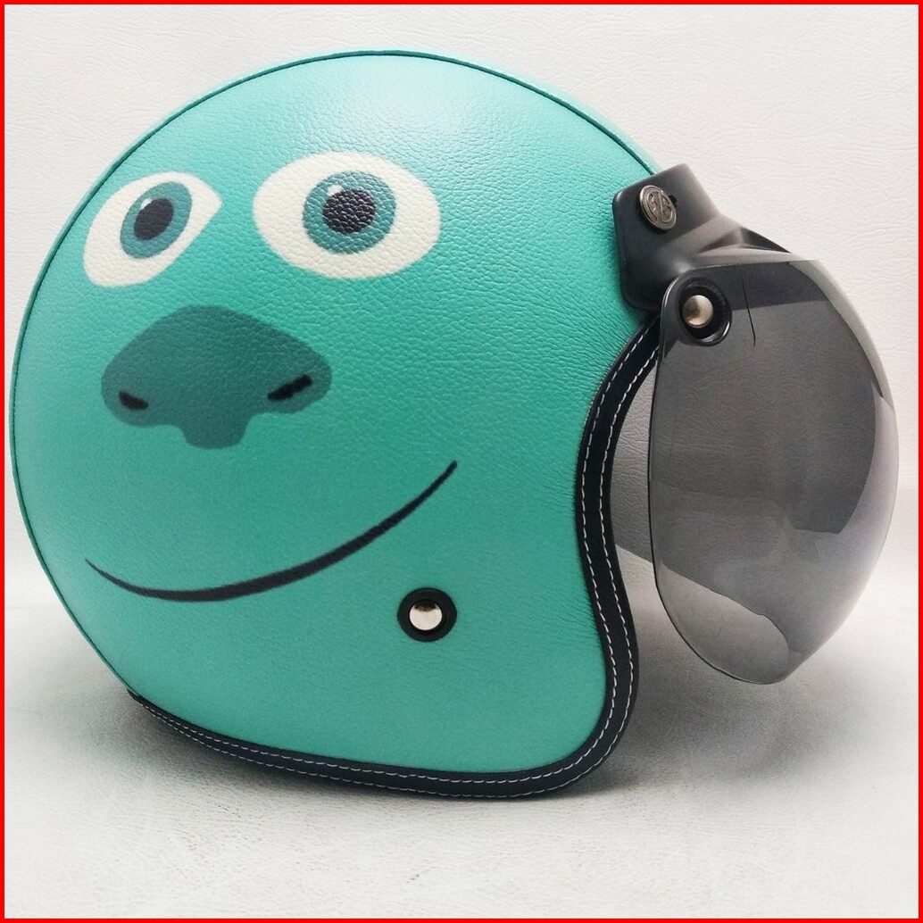 Helm Retro Bogo Kulit Motif James Monster Inc Klasik Kaca Bubble Halfface