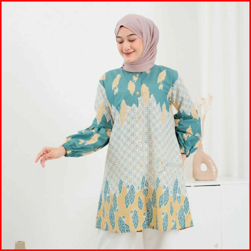 Atasan Tunik Batik Warna Soft M L Xl Xxl Xxxl