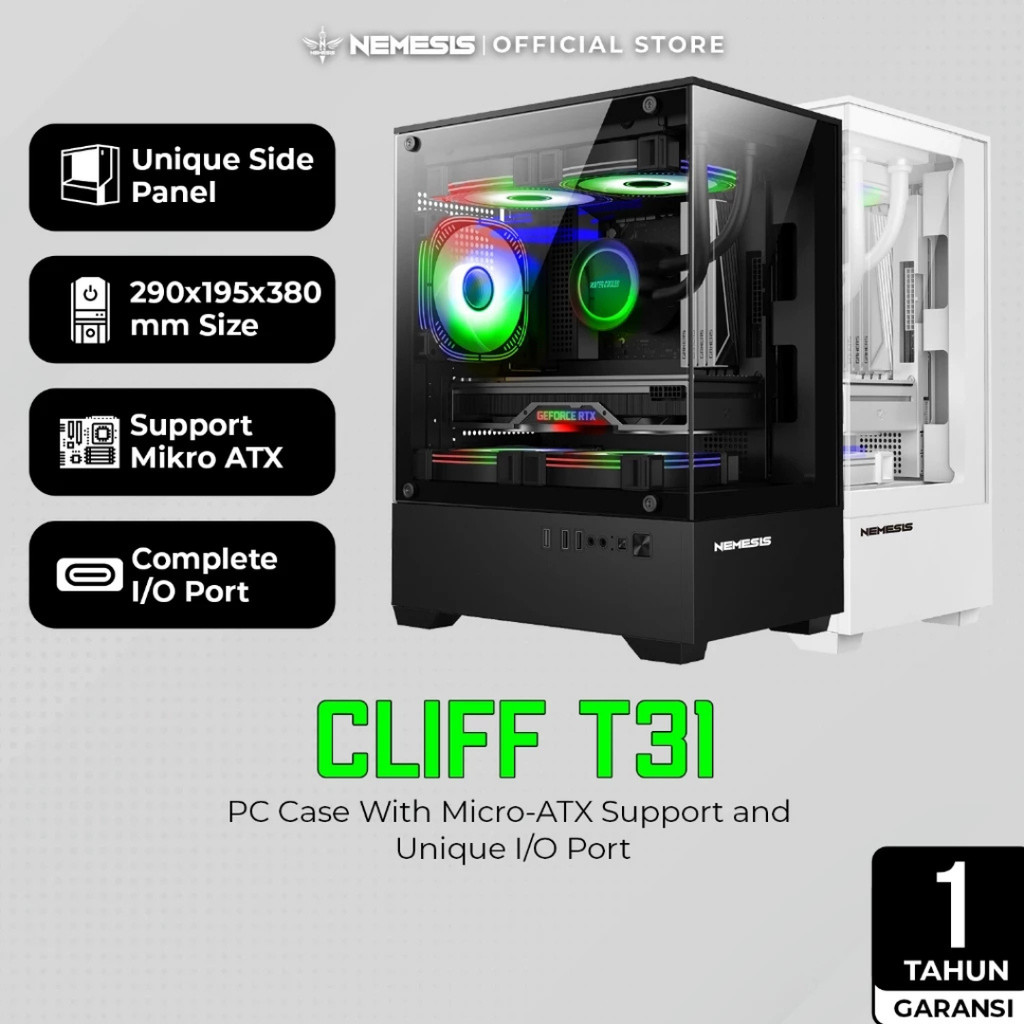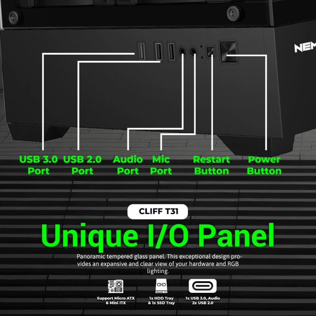 PC Case M-ATX M-ITX Nemesis CLIFF T31 Tempered Glass Aqua Case