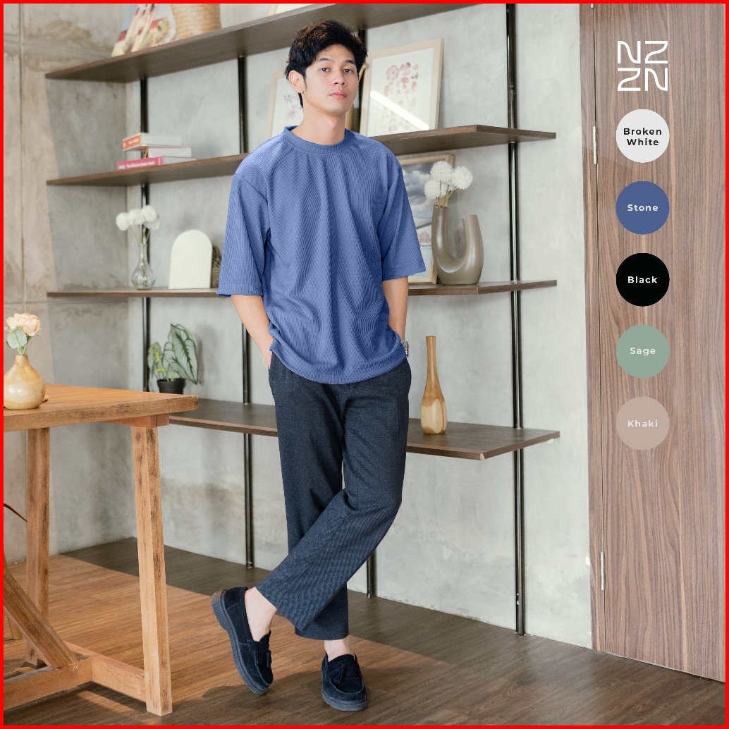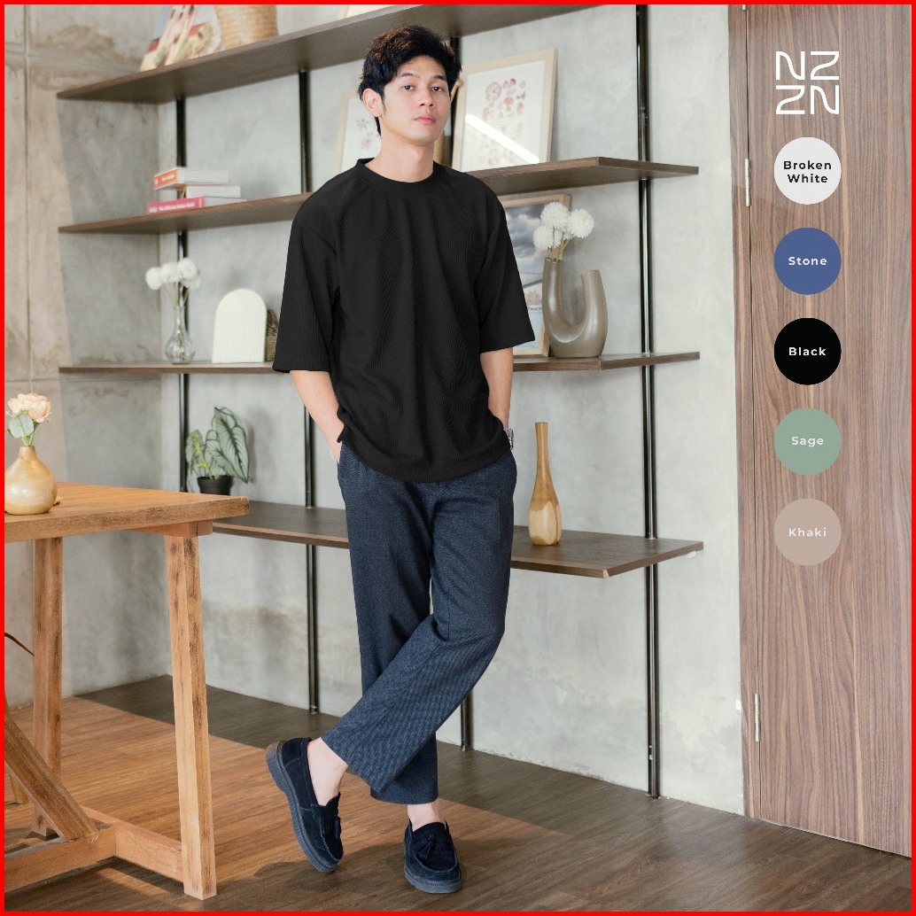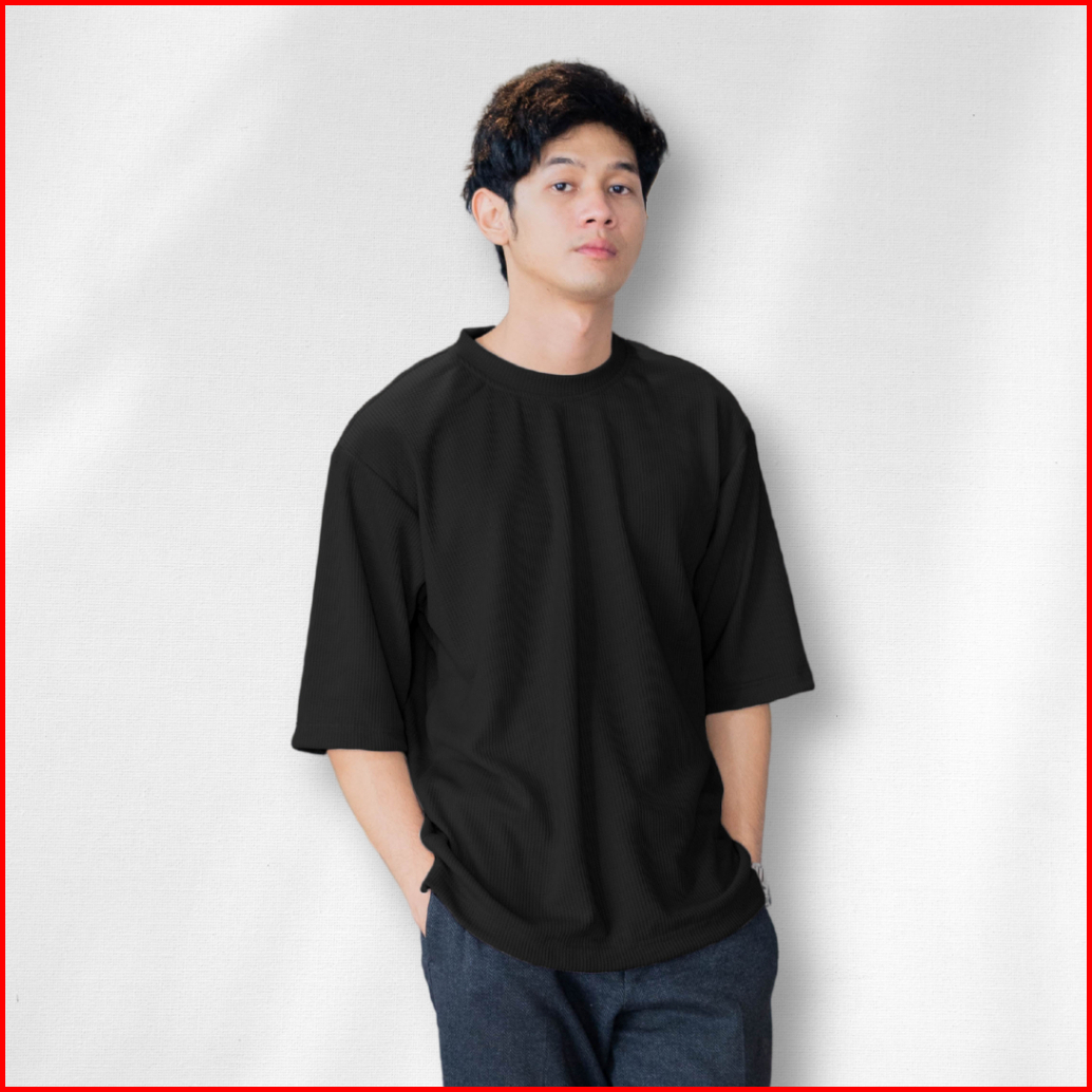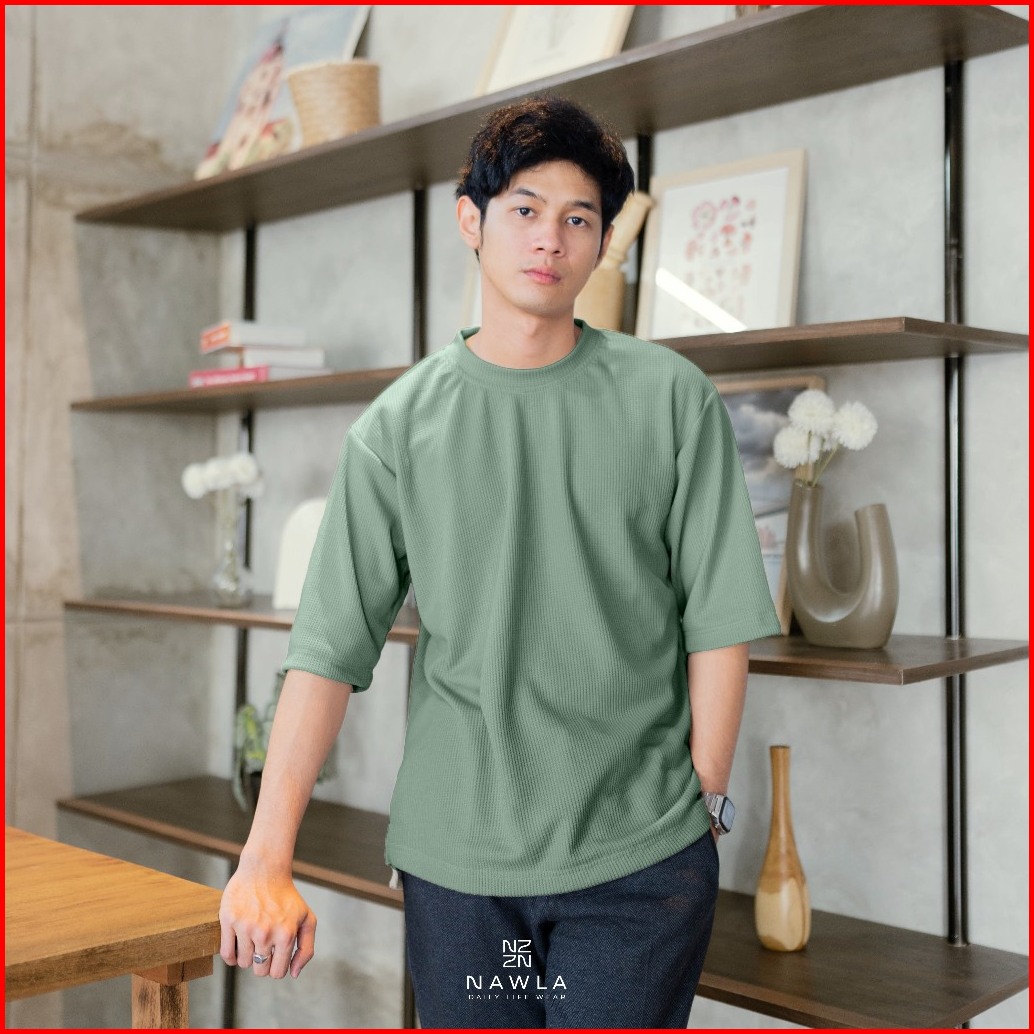 Nawla - Atasan Pria Kaos Oversize Lengan Pendek Bahan Waffle Knit Uniqlo