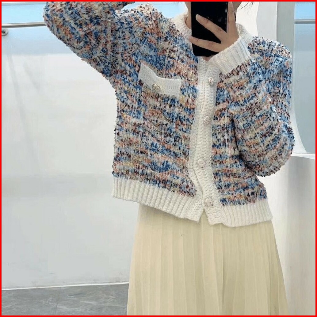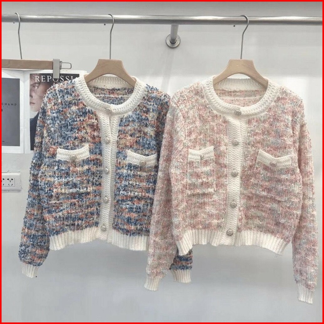 Mamamara - Atasan Sweater Cardigan Rajut Knit Top Knitwear Abstrak Tweed