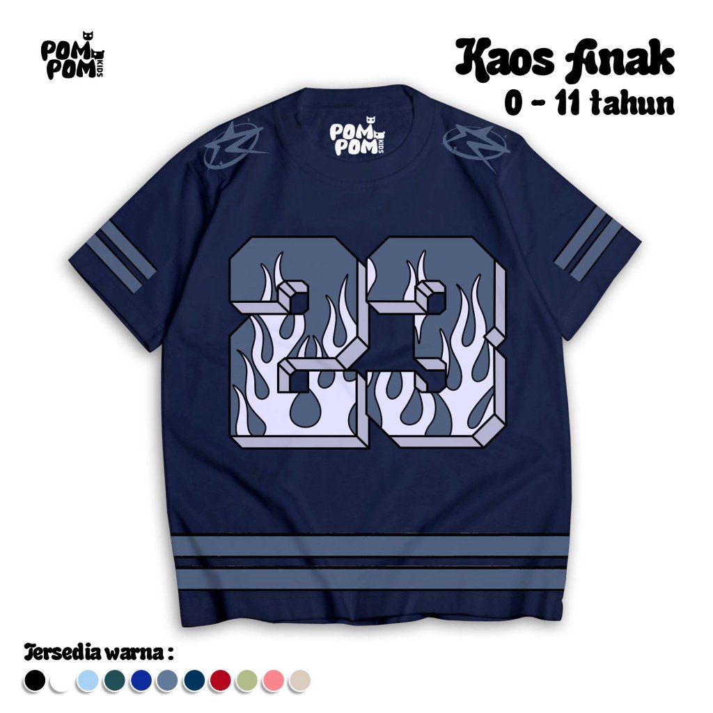 POMPOMKIDS - BASEBALL TEE NUMBER 23 I Kaos Oversize Anak Laki-Laki Perempuan 0-12 Tahun I Baju Jersey Sporty Katun Soft