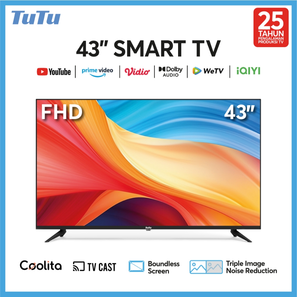 SMART TV TUTU 43 INCH COOLITA 3.0 FHD DOLBY AUDIO DIGITAL TELEVISI WIFI HDMI BOUNDLESS LOW BLUE LIGHT PROMO MURAH