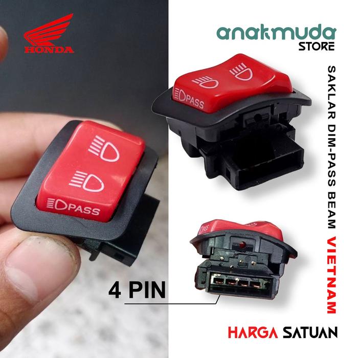 Saklar Lampu Tombol Pass Beam Dim Dimmer 4 PIN VIETNAM 3 Fungsi Lampu Tembak Motor Honda Beat Vario 125 150 LED - soket