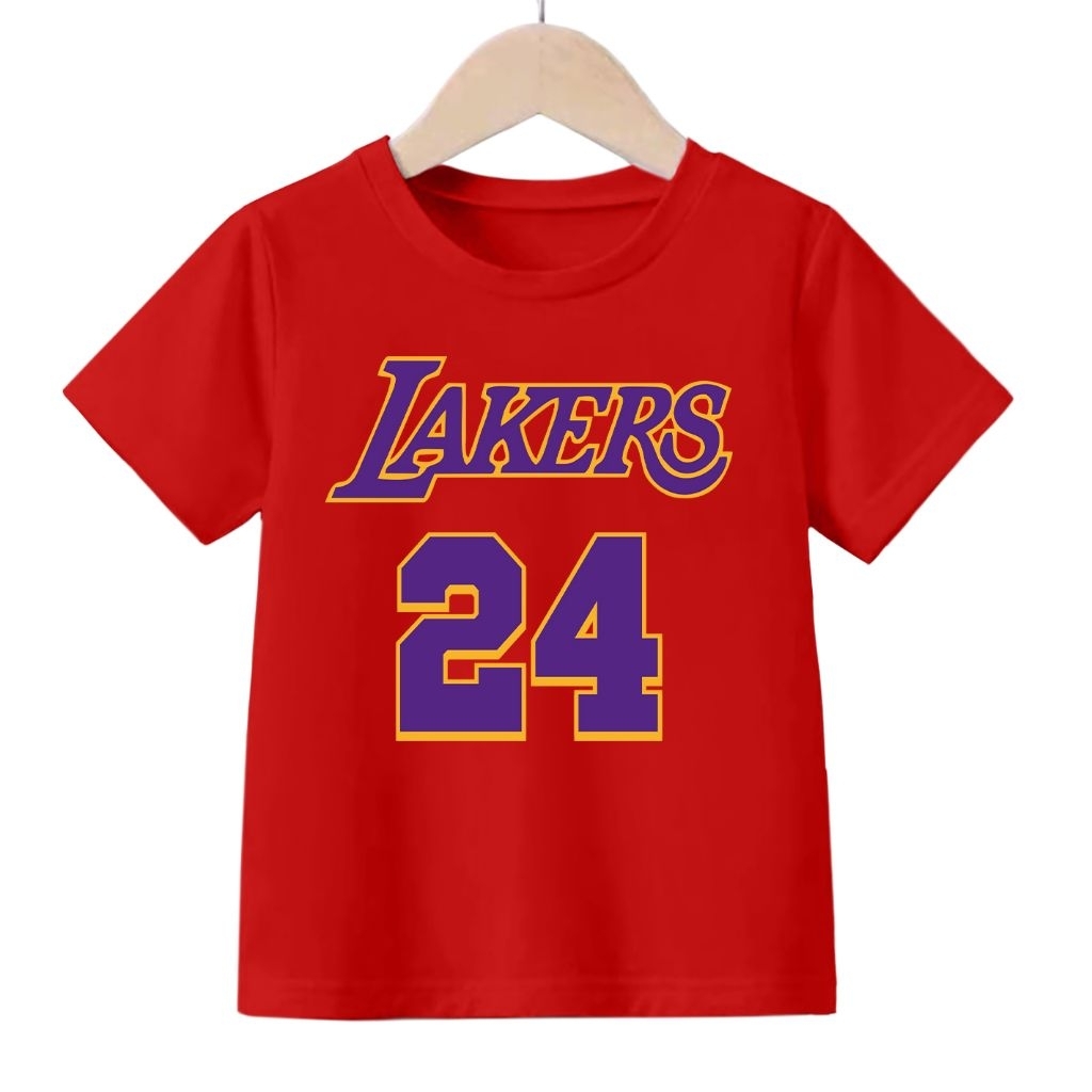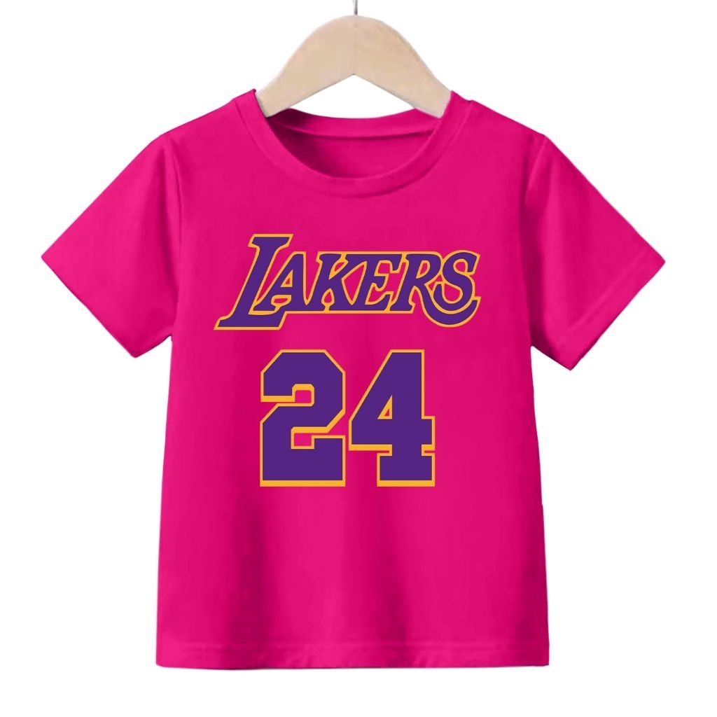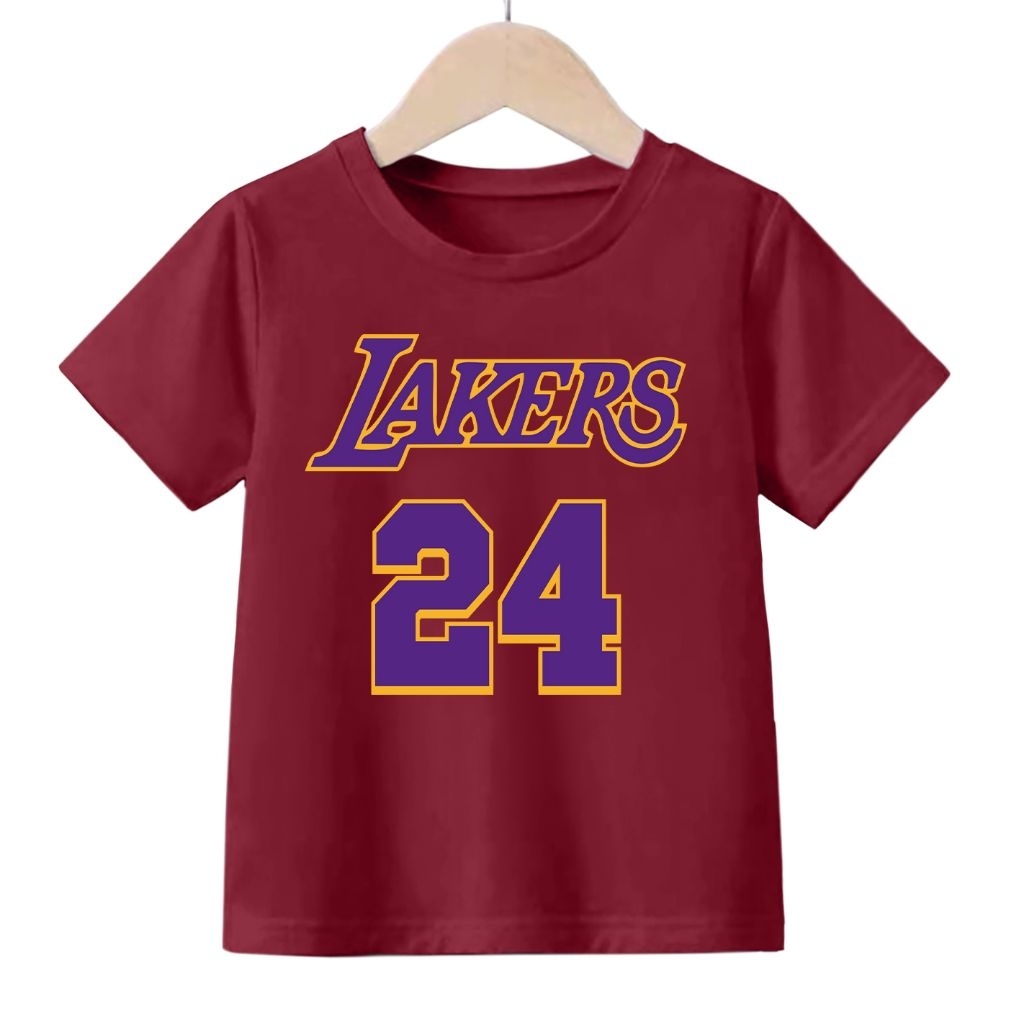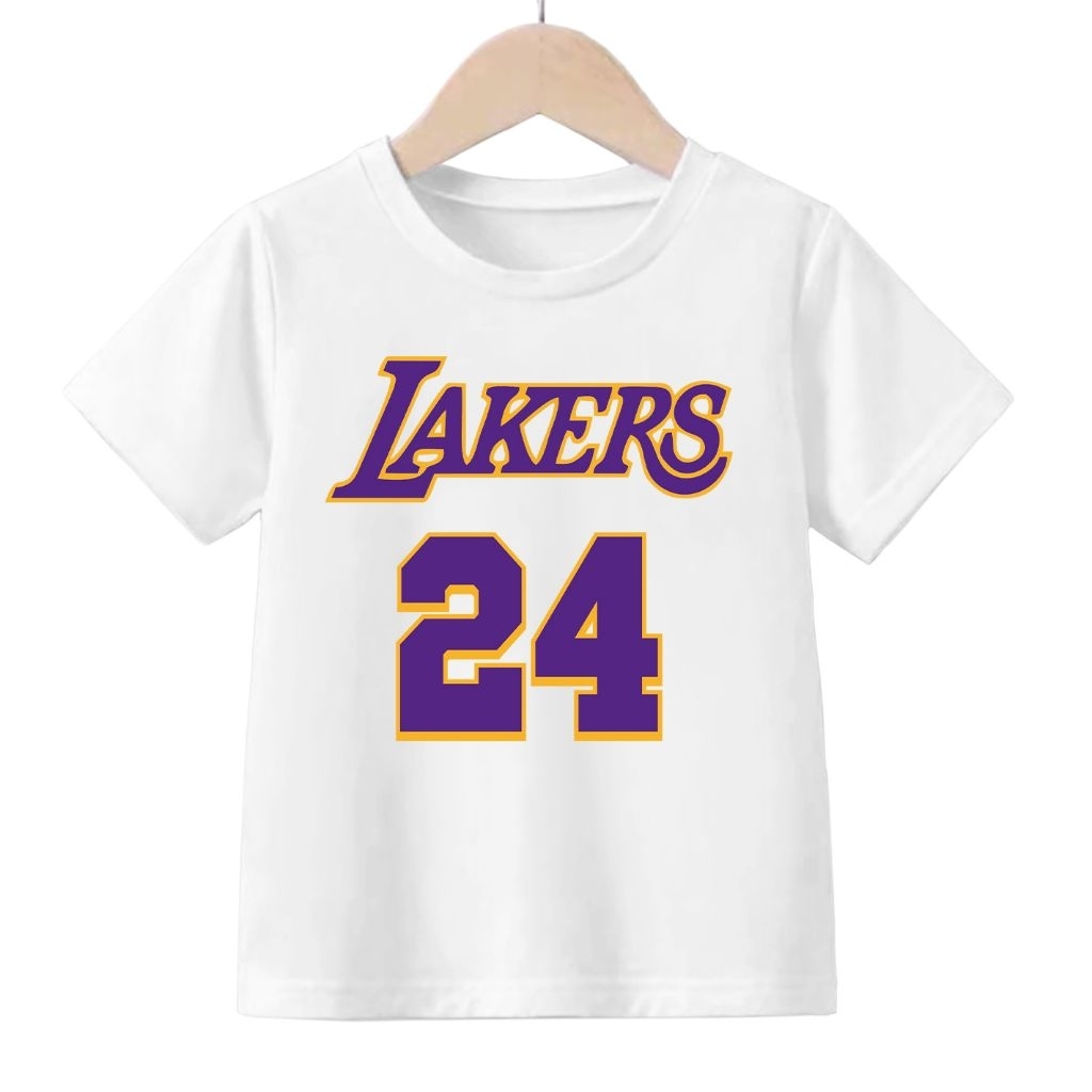 Baju Kaos Anak Laki Laki Perempuan Lengan Pendek Karakter Number 24 Lakers Kaos Jersey Atasan Anak Unisex 2-12 tahun