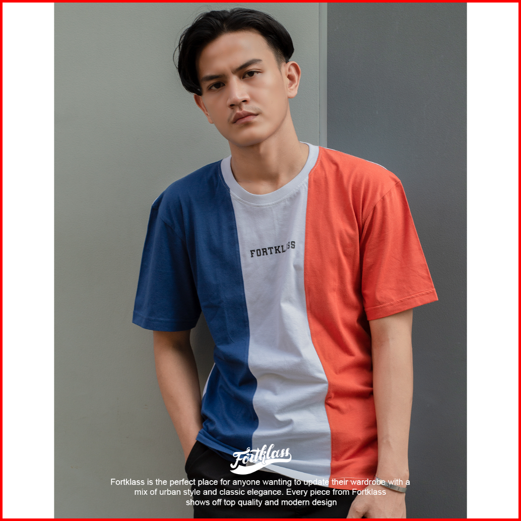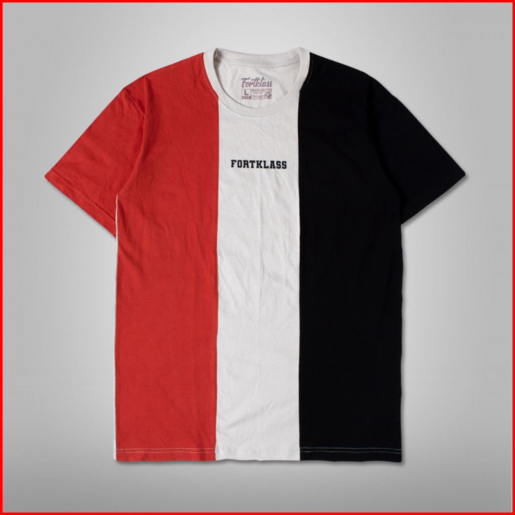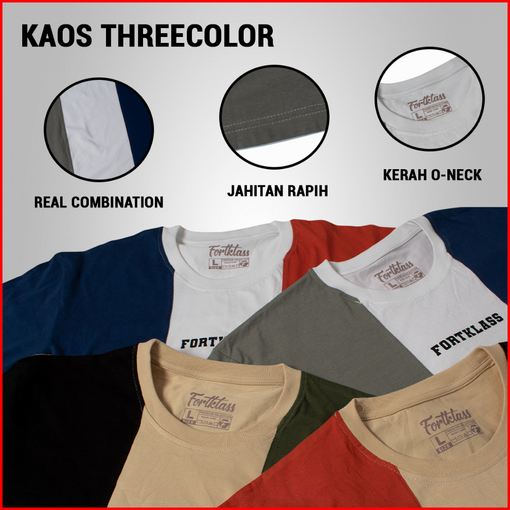 Fortklass Kaos Threecolor Pria Katun Combed Reguler Fit Kaos Pria Lengan Pendek